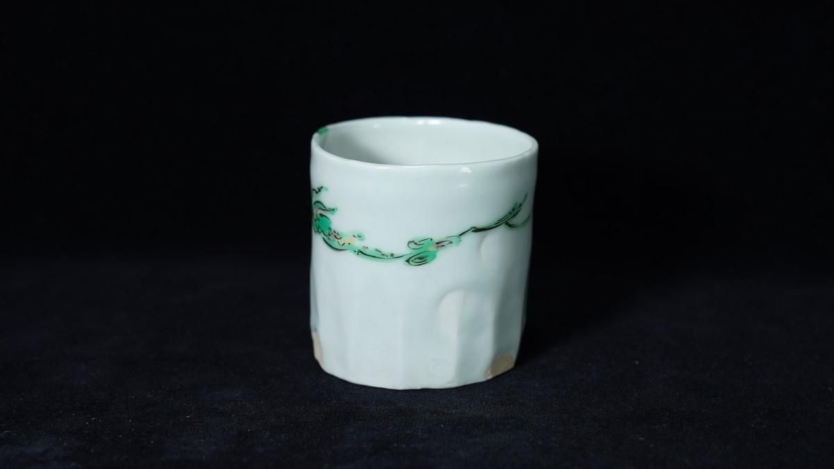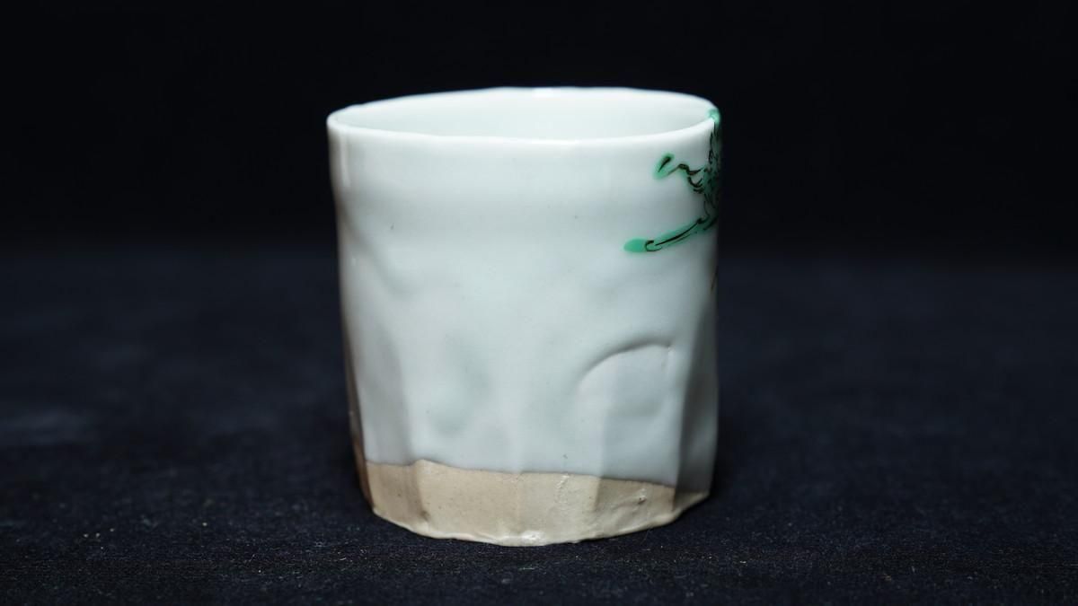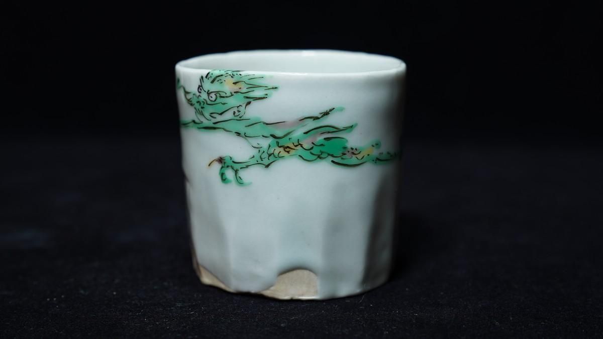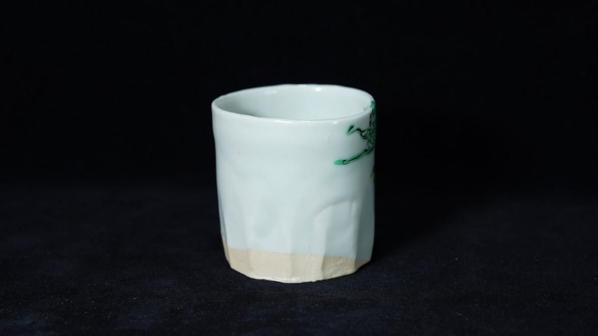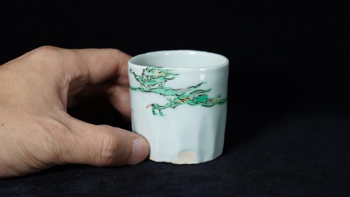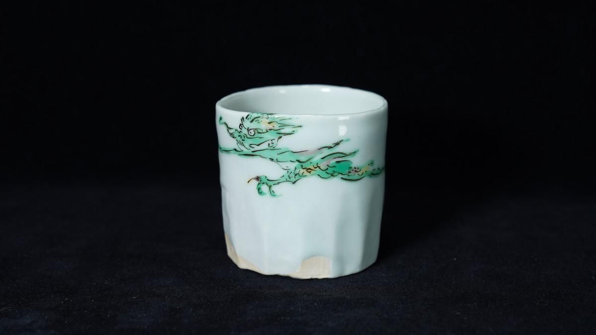 ÎëÌÚÎÃ»Ò ÎкÌζÌÌÅâ»ÒʸÇÖ [ Green-glazed Sake Cup with Karako Wearing a Dragon Mask by Ryoko Suzuki ]