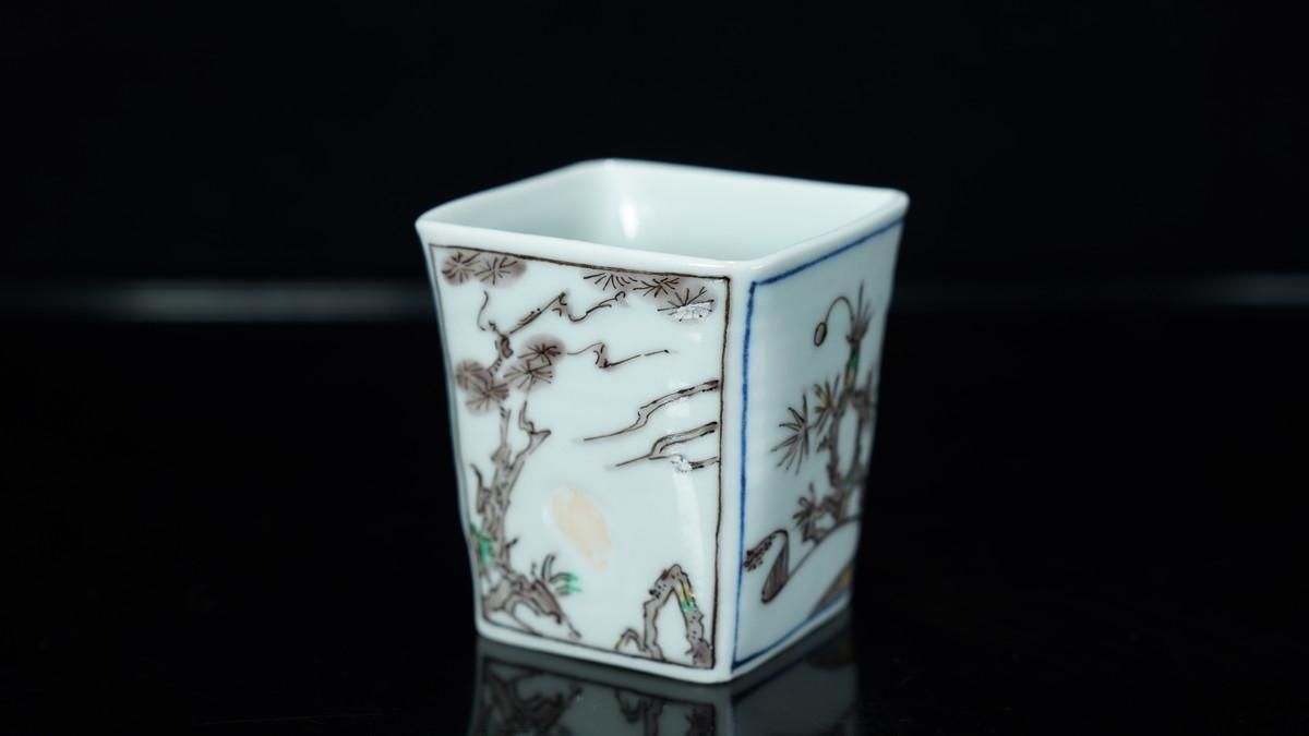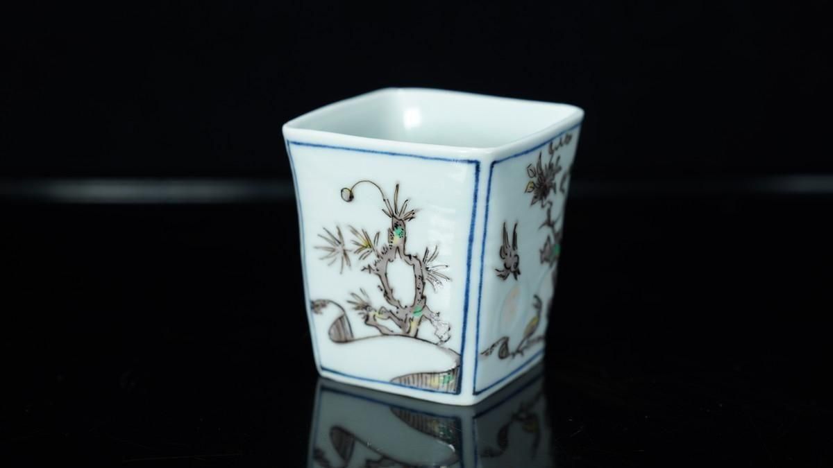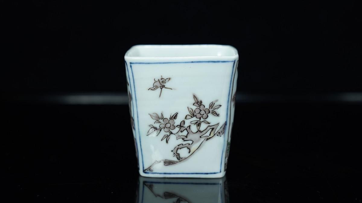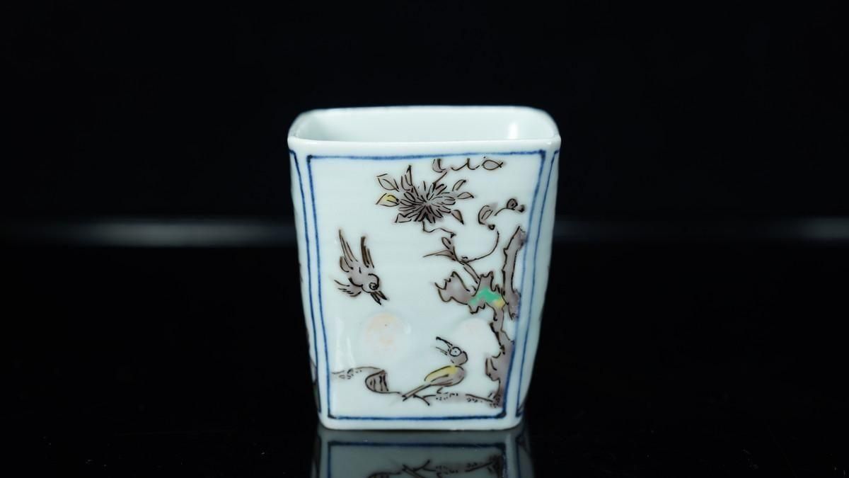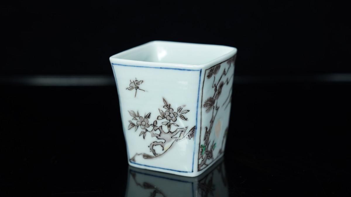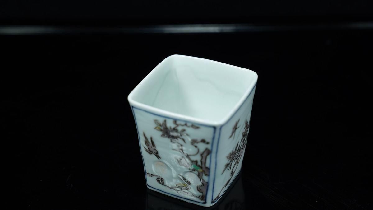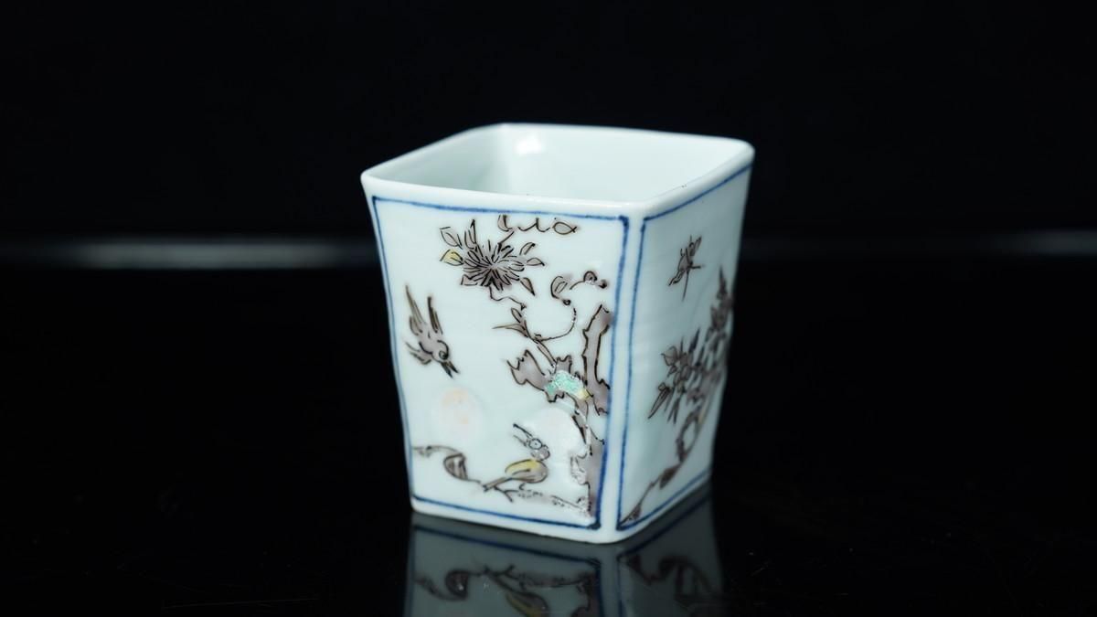 ÎëÌÚÎÃ»Ò Æ¦ºÌ²ÖĻʸ³ÑÇÖ [ Doucai Square Sake Cup with Floral and Bird Design by Ryoko Suzuki ]
