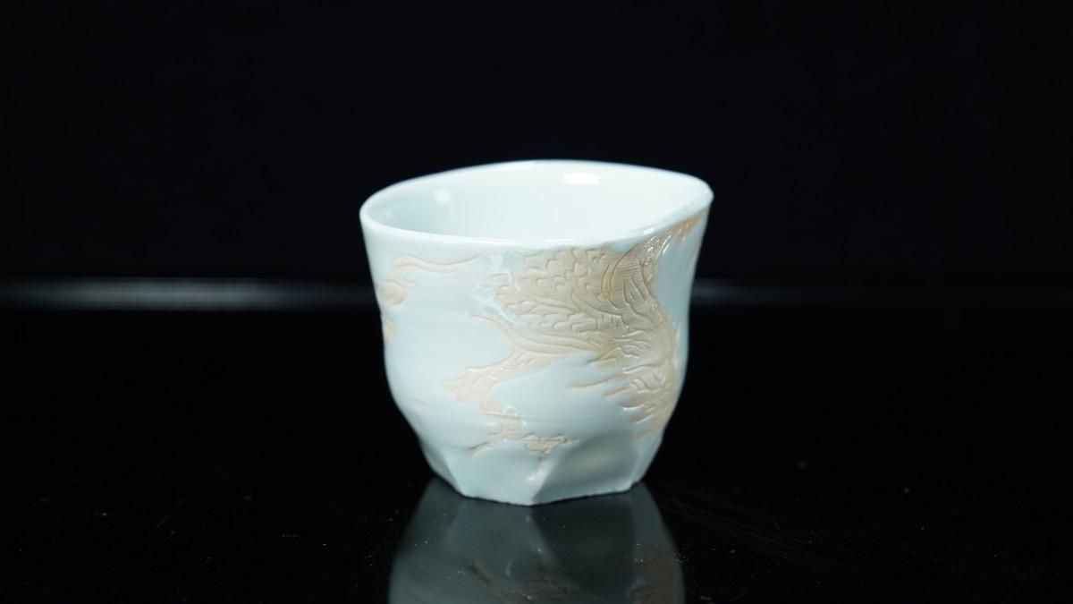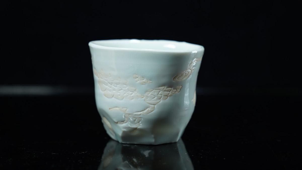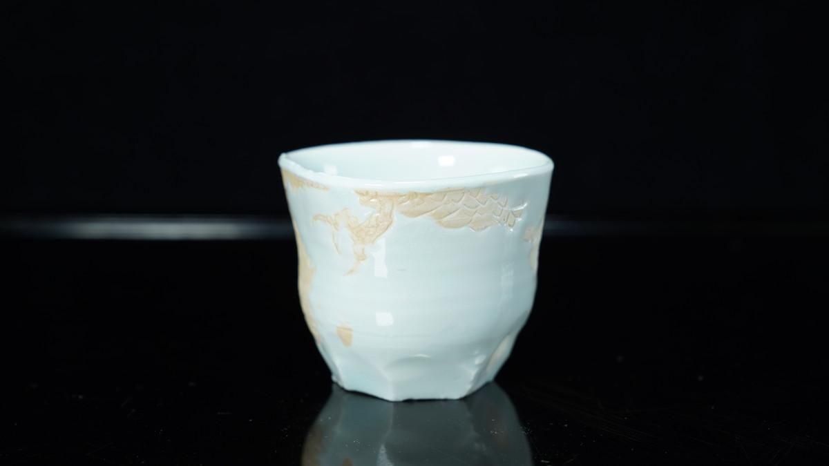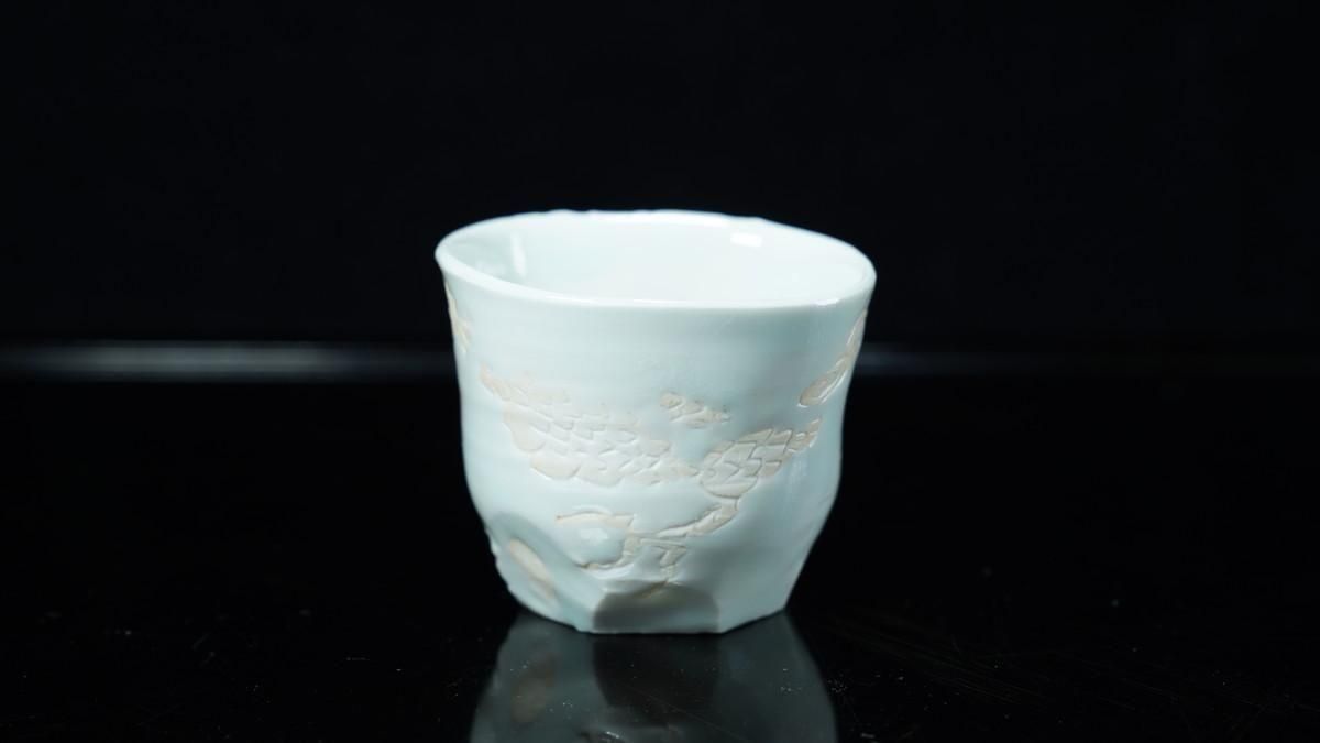ÎëÌÚÎÃ»Ò Çò¼§¹ï²ÖζʸÇÖ [ White Porcelain Sake Cup with Carved Dragon Design by Ryoko Suzuki ]