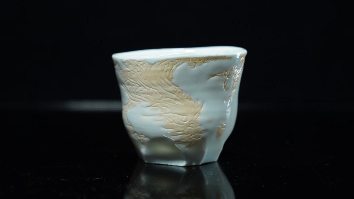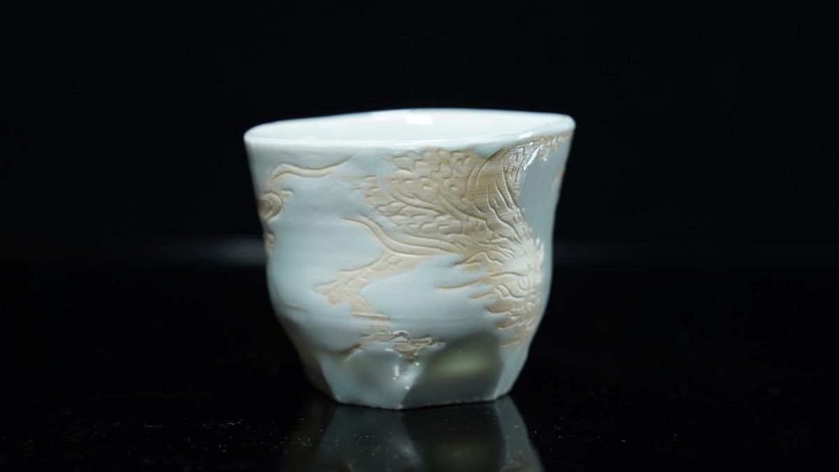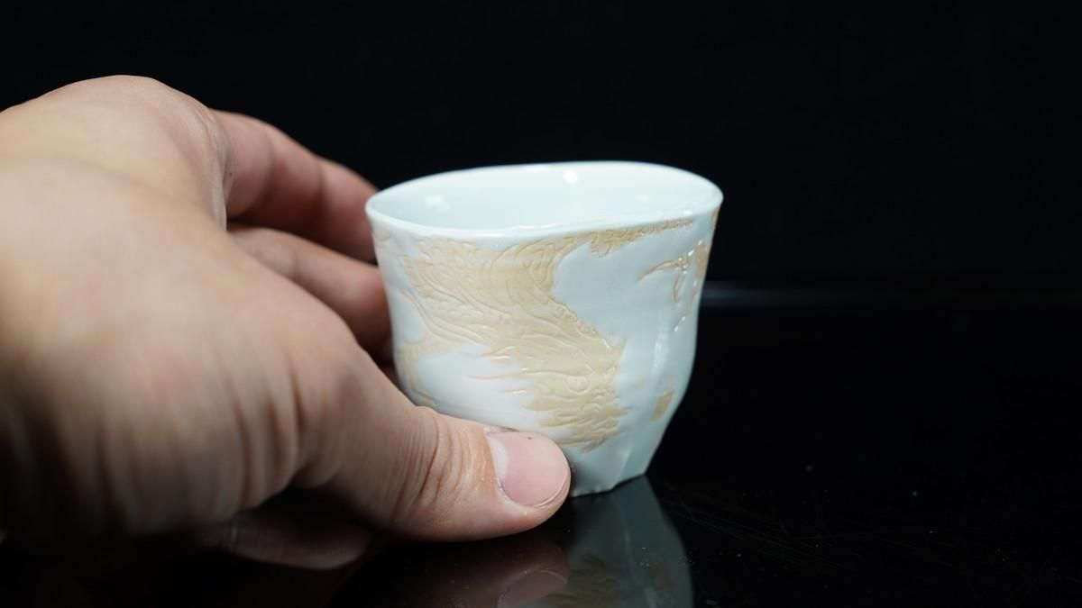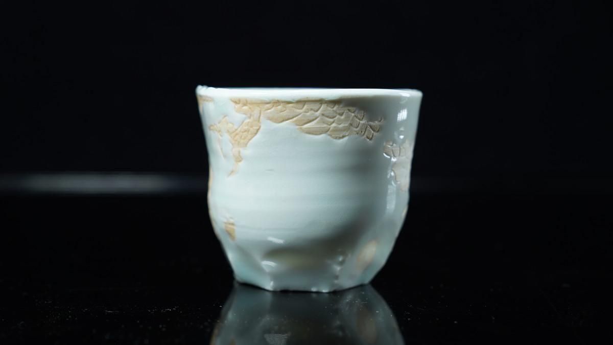 ÎëÌÚÎÃ»Ò Çò¼§¹ï²ÖζʸÇÖ [ White Porcelain Sake Cup with Carved Dragon Design by Ryoko Suzuki ]