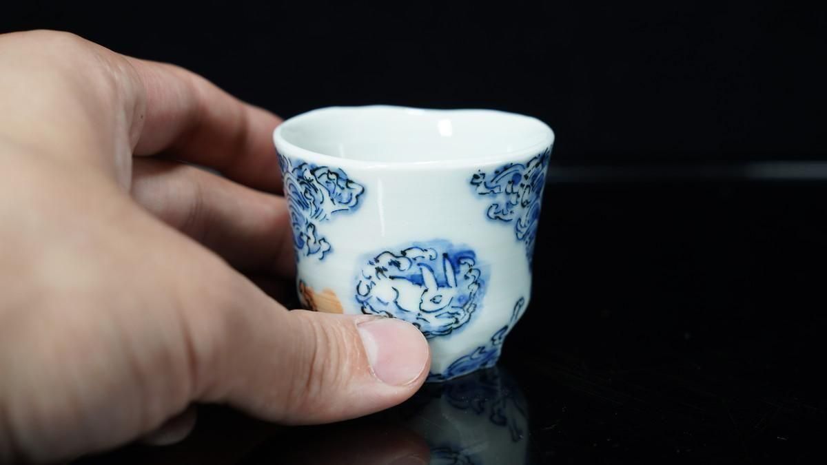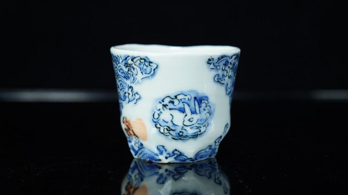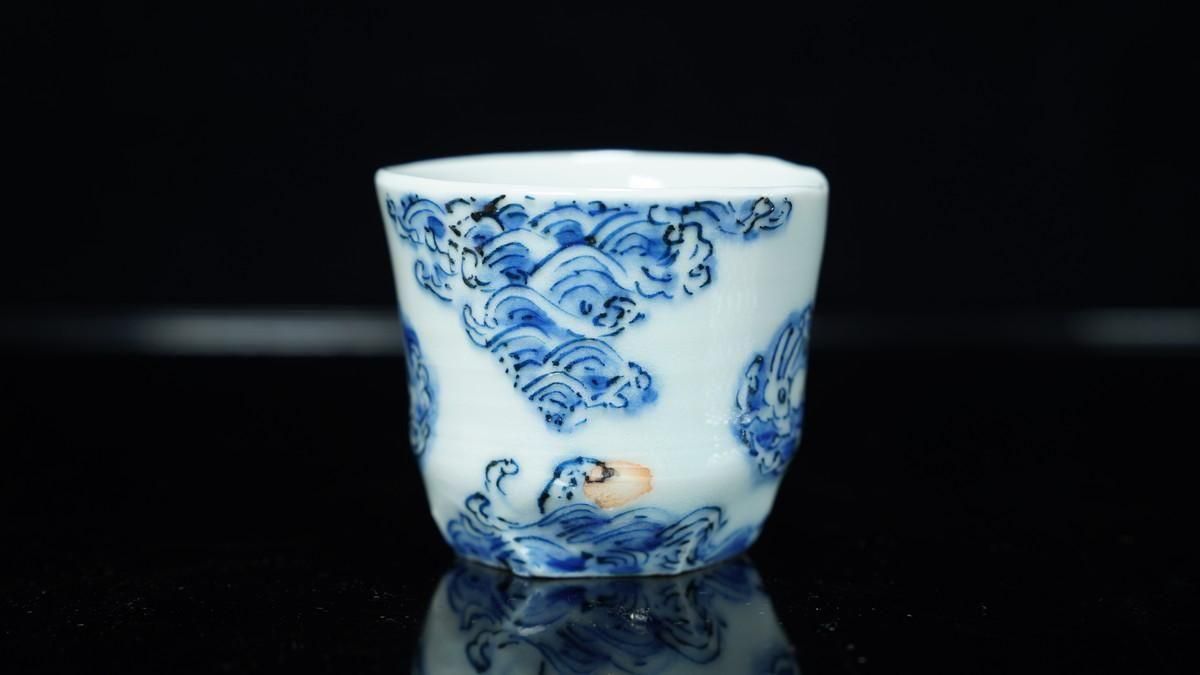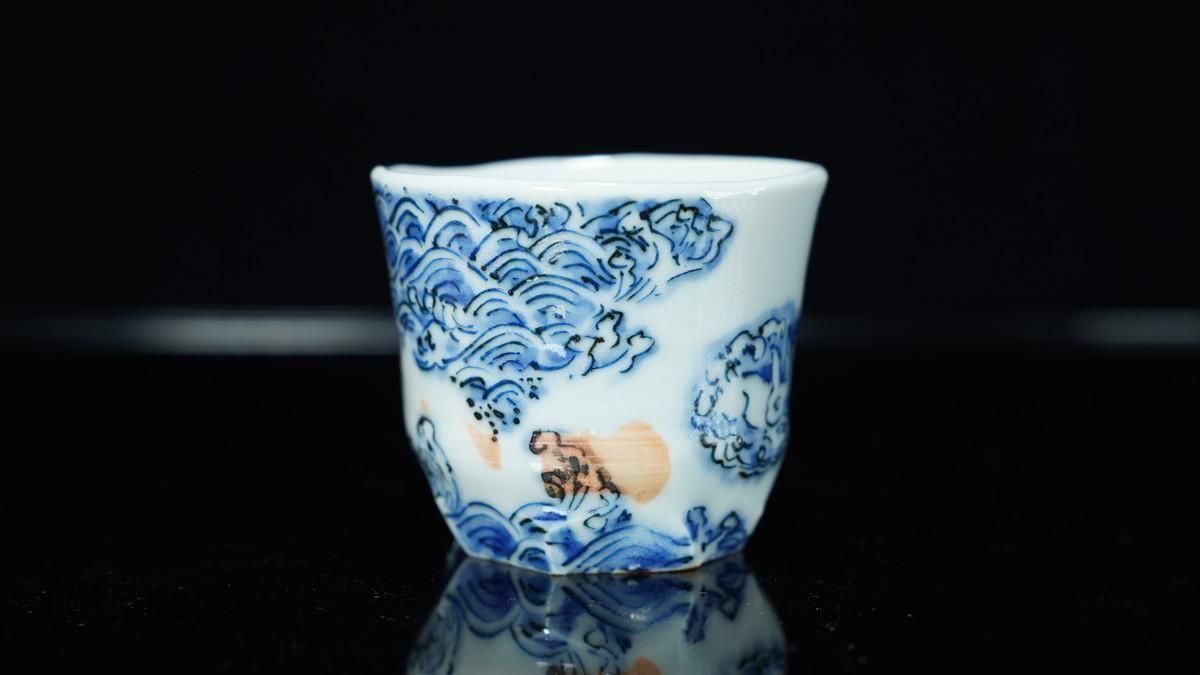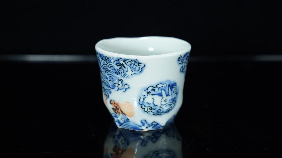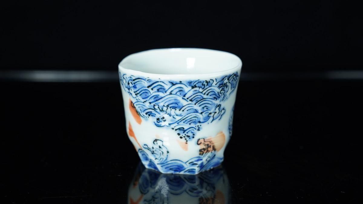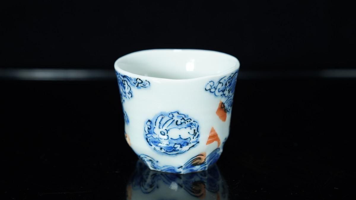 ÎëÌÚÎÃ»Ò ÀIJÖÇÈÅÆÊ¸ÇÖ [ Blue and White Sake Cup with Wave and Rabbit Design by Ryoko Suzuki ]