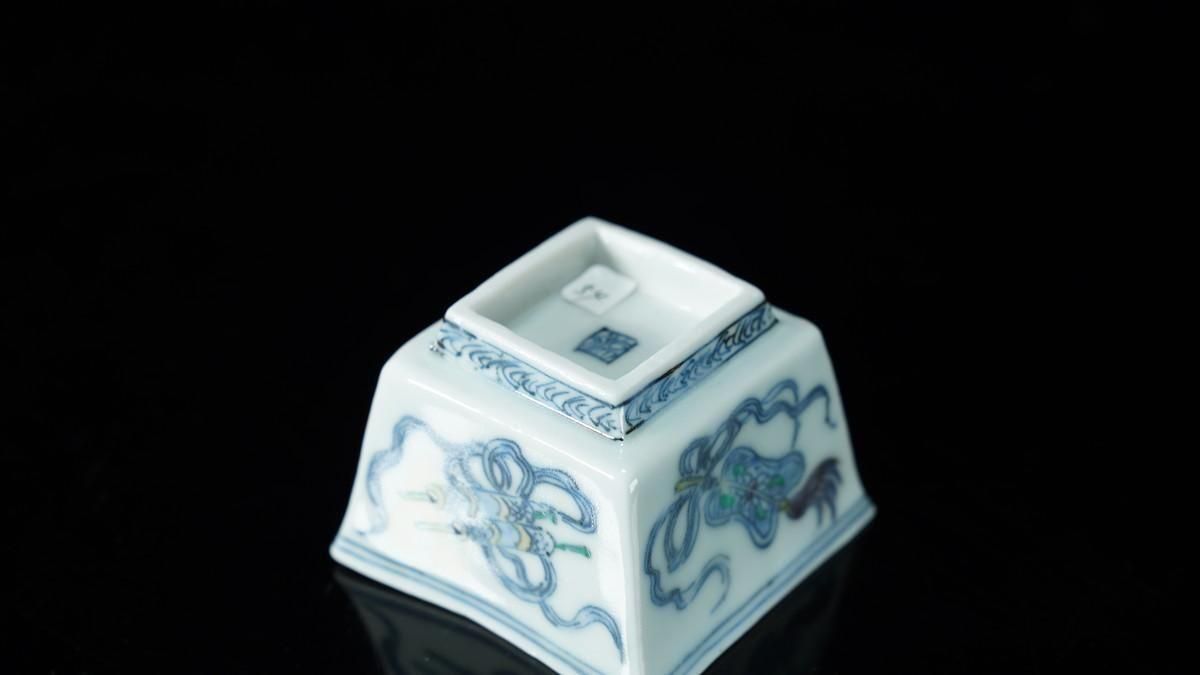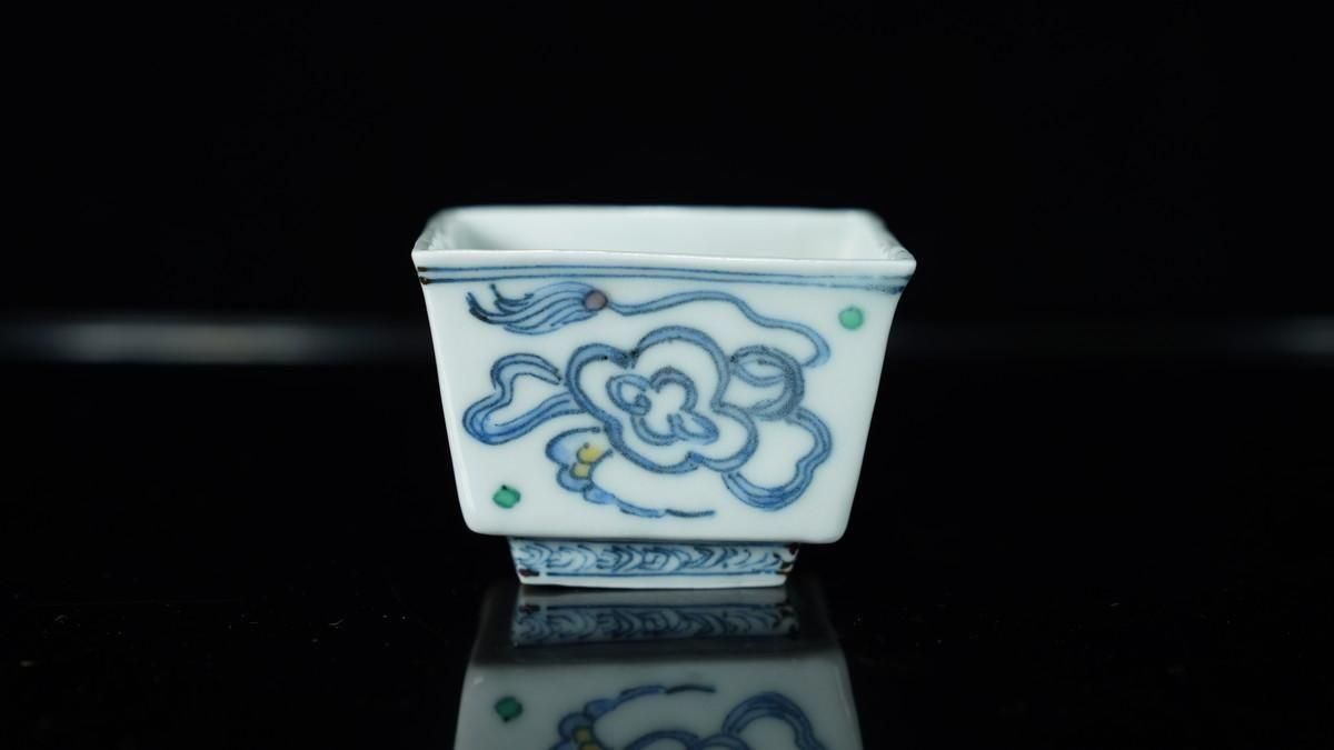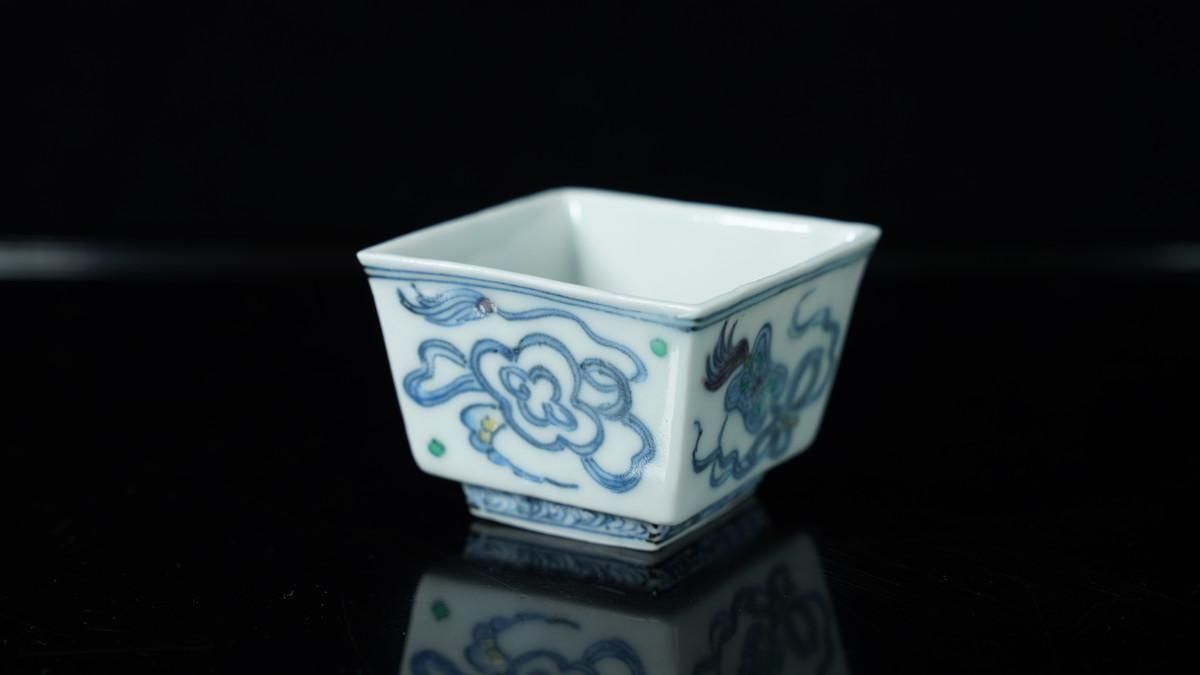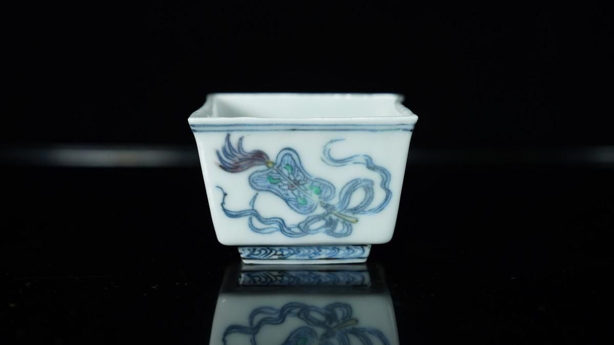 ÎëÌÚÎÃ»Ò Æ¦ºÌ²ÖĻʸ³ÑÇÖ [ Doucai Square Sake Cup with Floral and Bird Design by Ryoko Suzuki ]