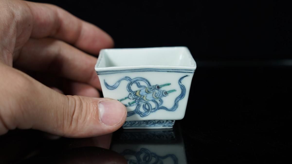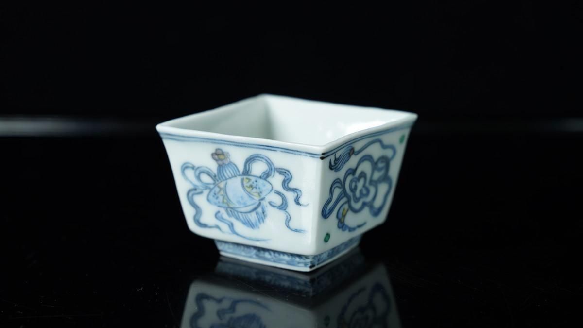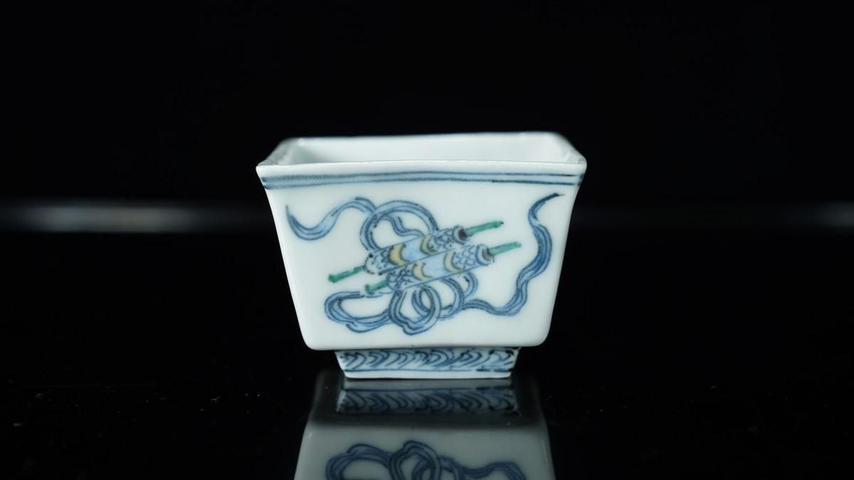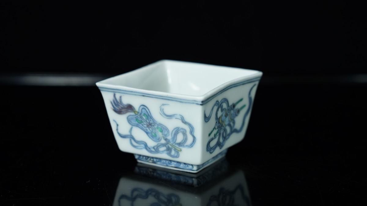 ÎëÌÚÎÃ»Ò Æ¦ºÌ²ÖĻʸ³ÑÇÖ [ Doucai Square Sake Cup with Floral and Bird Design by Ryoko Suzuki ]