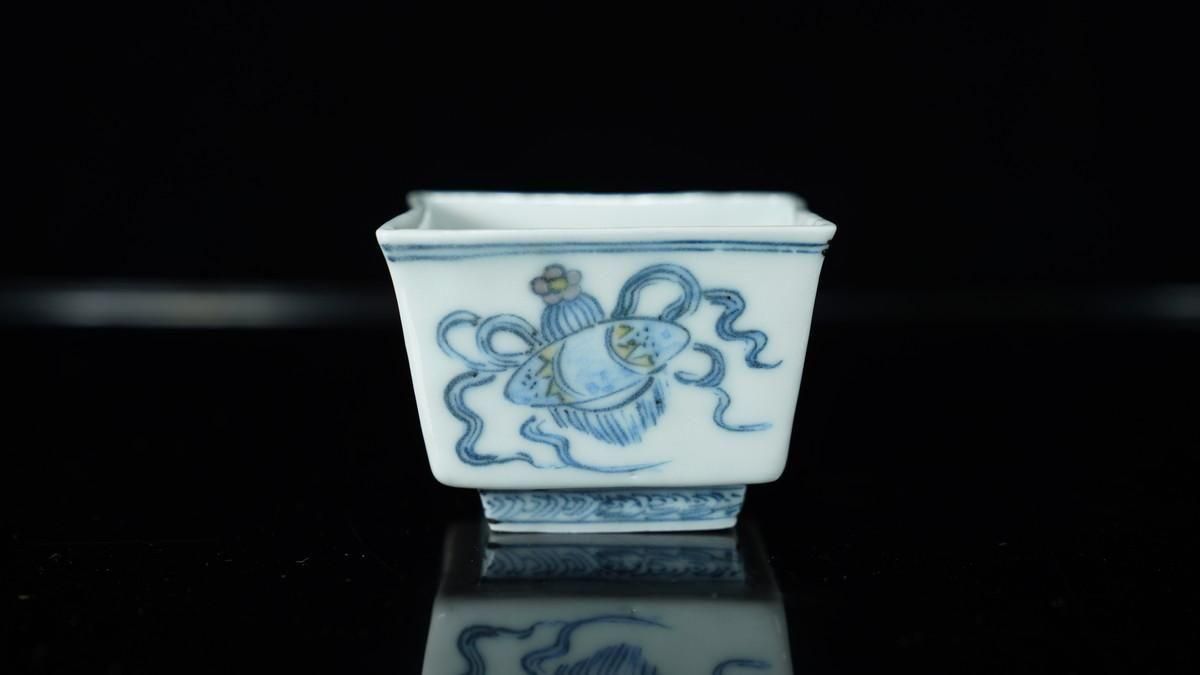 ÎëÌÚÎÃ»Ò ¹ï²ÖÀIJÖÃÄζʸ³ÑÇÖ [ Blue and White Square Sake Cup with Round Dragon Design by Ryoko Suzuki ]