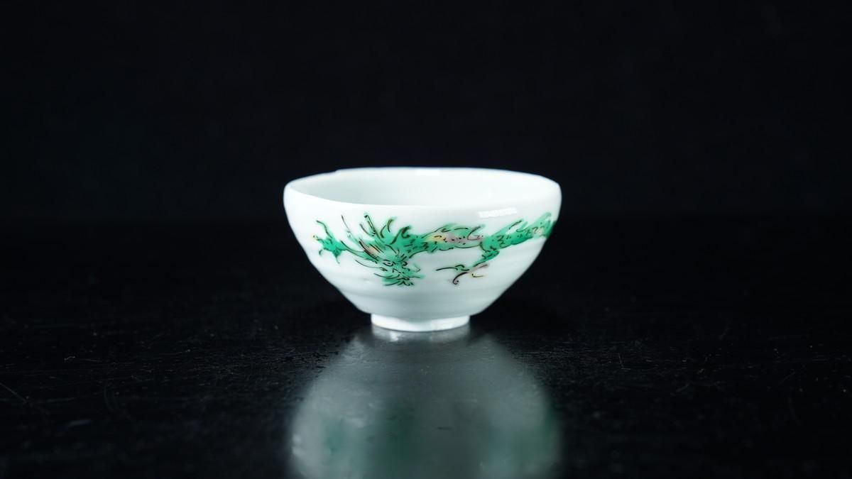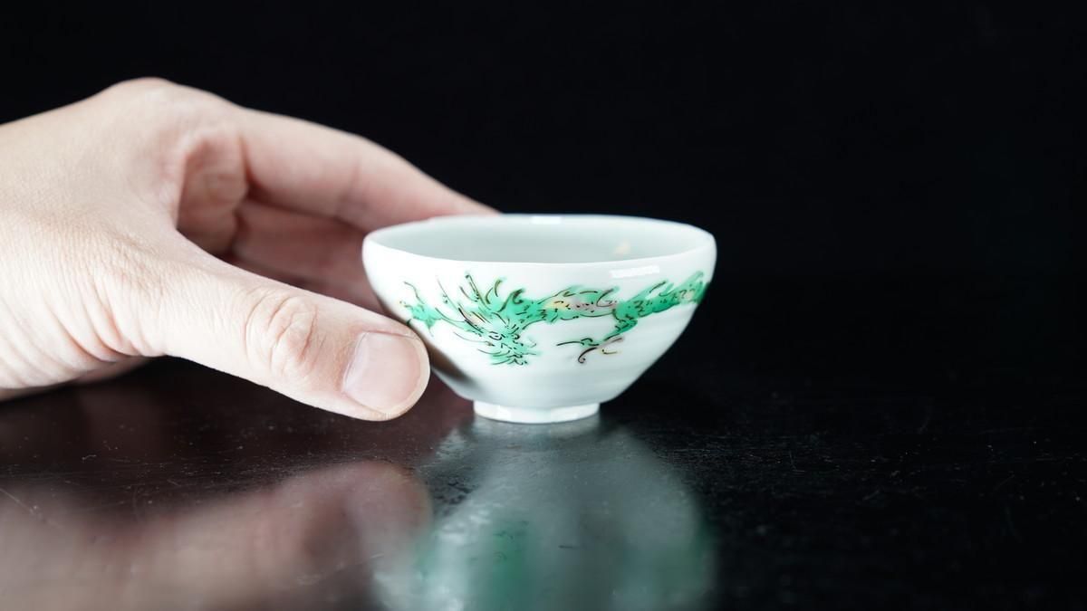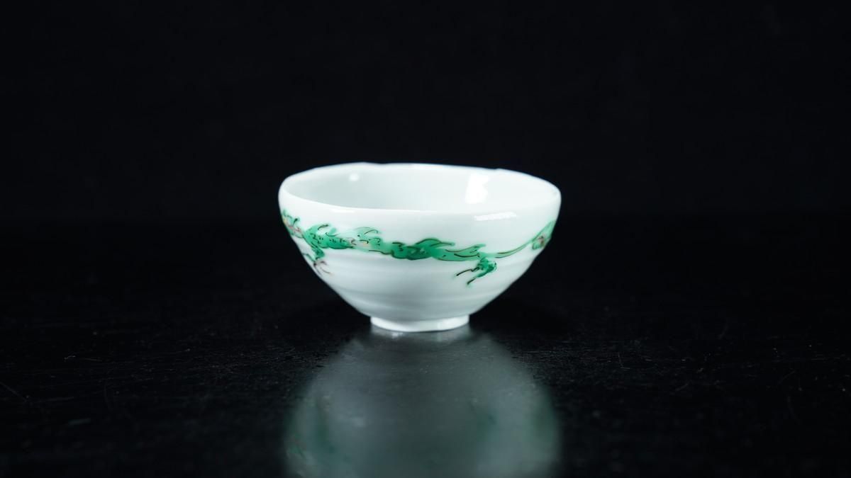 ÎëÌÚÎÃ»Ò ÎкÌζÌÌÅâ»ÒʸÇÖ [ Green-glazed Sake Cup with Karako Wearing a Dragon Mask by Ryoko Suzuki ]