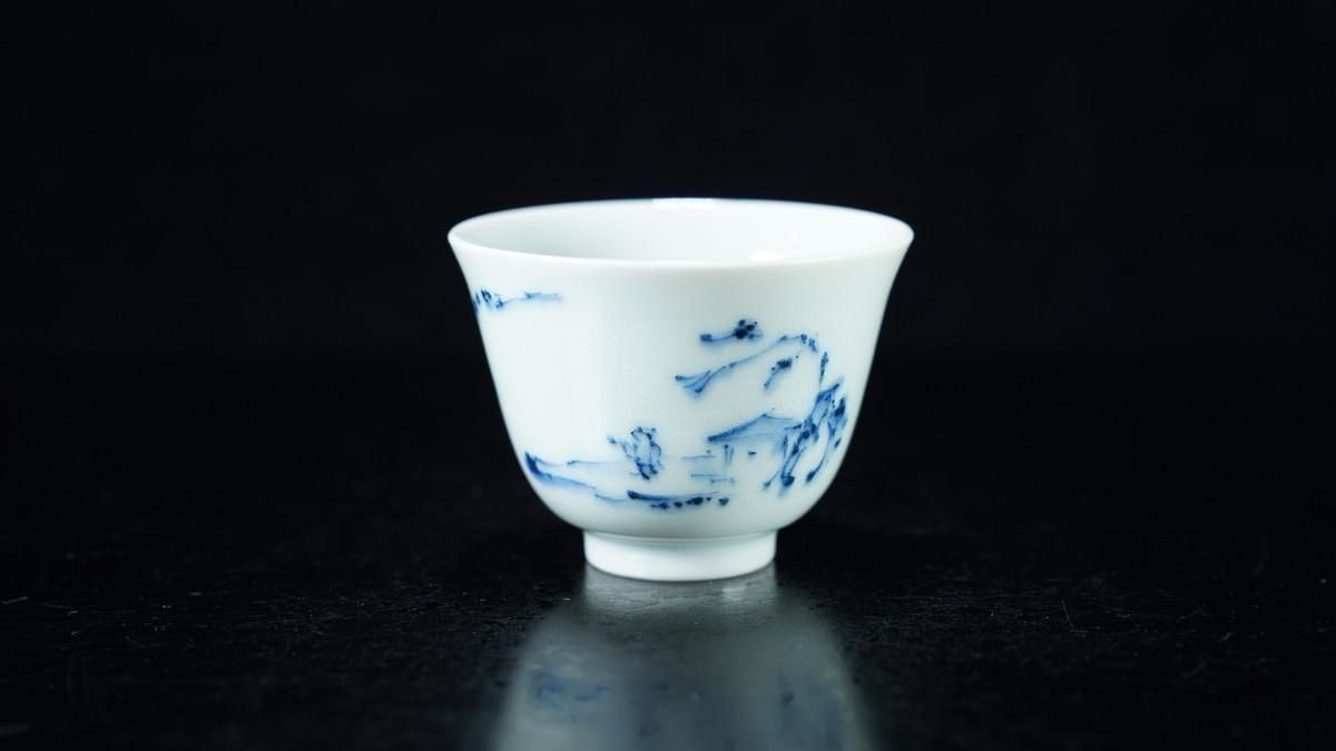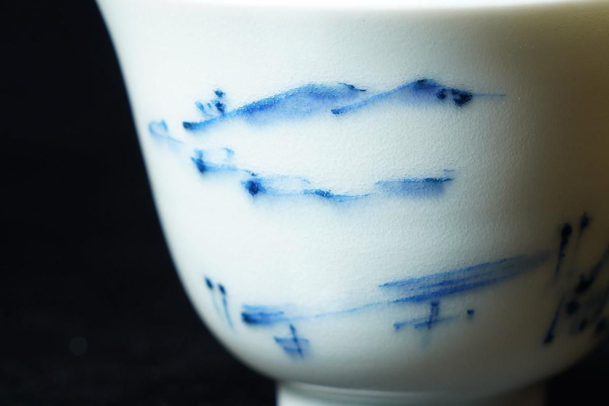 ÎëÌÚÎÃ»Ò ÀIJÖÇÈÅÆÊ¸ÇÖ [ Blue and White Sake Cup with Wave and Rabbit Design by Ryoko Suzuki ]
