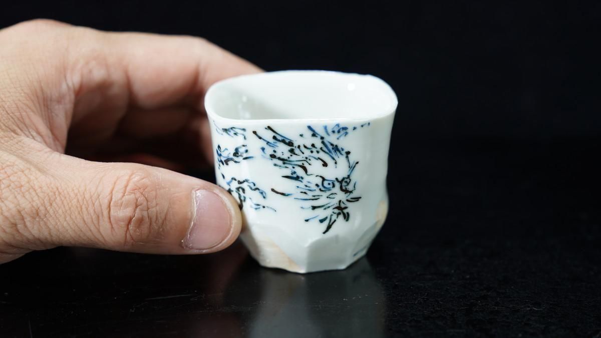 ÎëÌÚÎÃ»Ò ÀIJÖÇÈÅÆÊ¸ÇÖ¡ÊÌÚ±»¡Ë [ Blue and White Lobed Sake Cup with Wave and Rabbit Design by Ryoko Suzuki ]