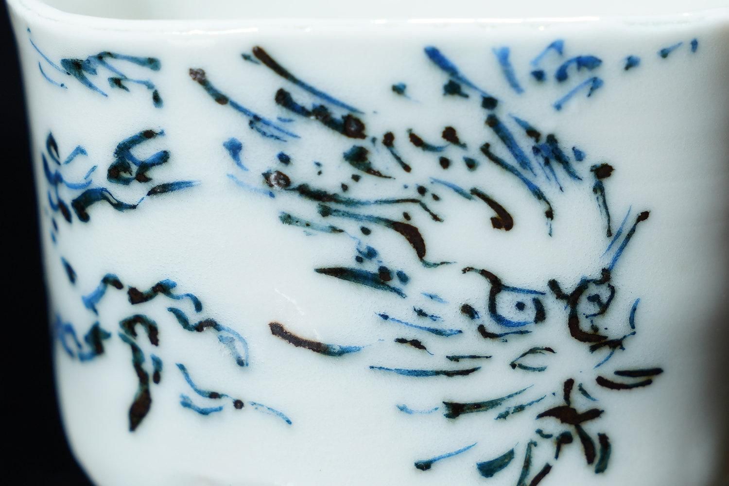 ÎëÌÚÎÃ»Ò ÀIJÖζʸÇÖ [ Blue and White Square Sake Cup with Dragon Design by Ryoko Suzuki ]