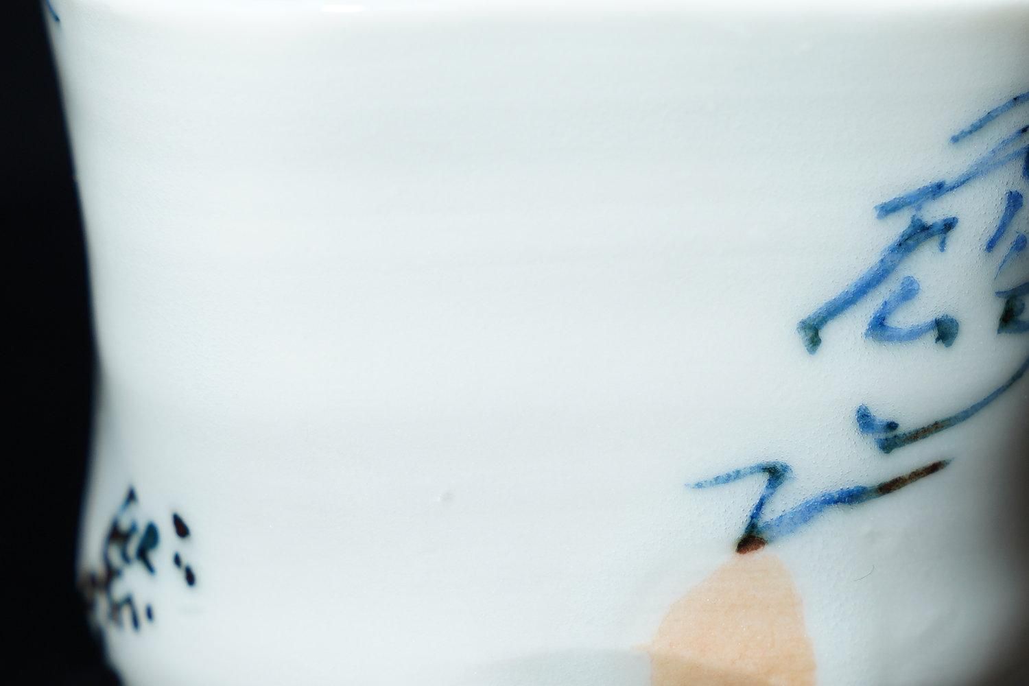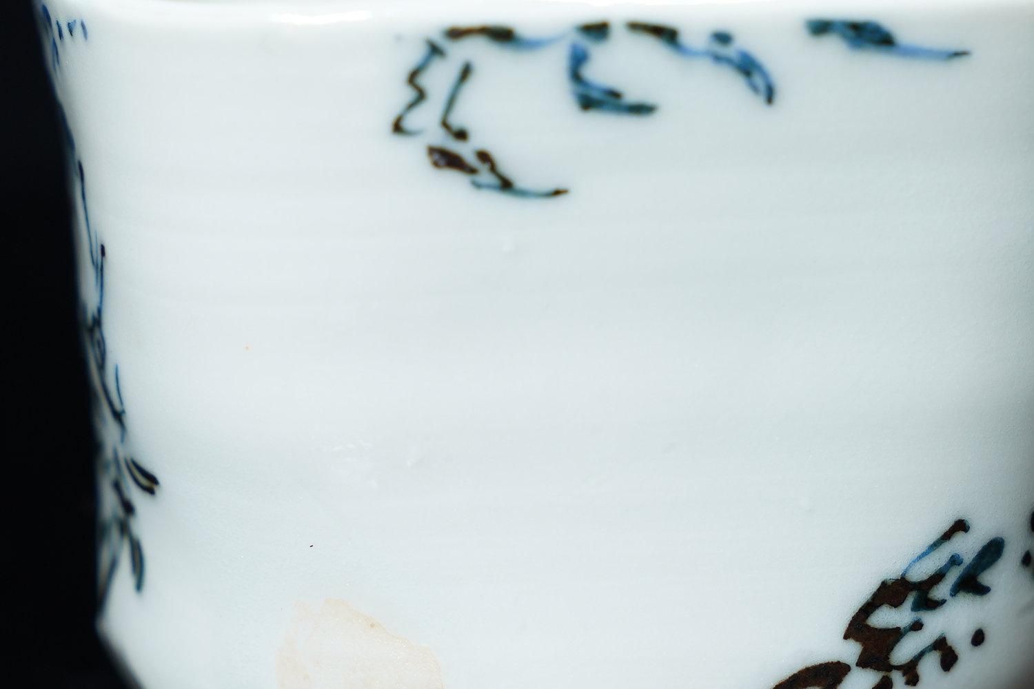 ÎëÌÚÎÃ»Ò ÀIJֲ«ºÌÇÈÅÆÊ¸ÇÖ [ Blue and White Sake Cup with Yellow-glazed Wave and Rabbit Design by Ryoko Suzuki ]