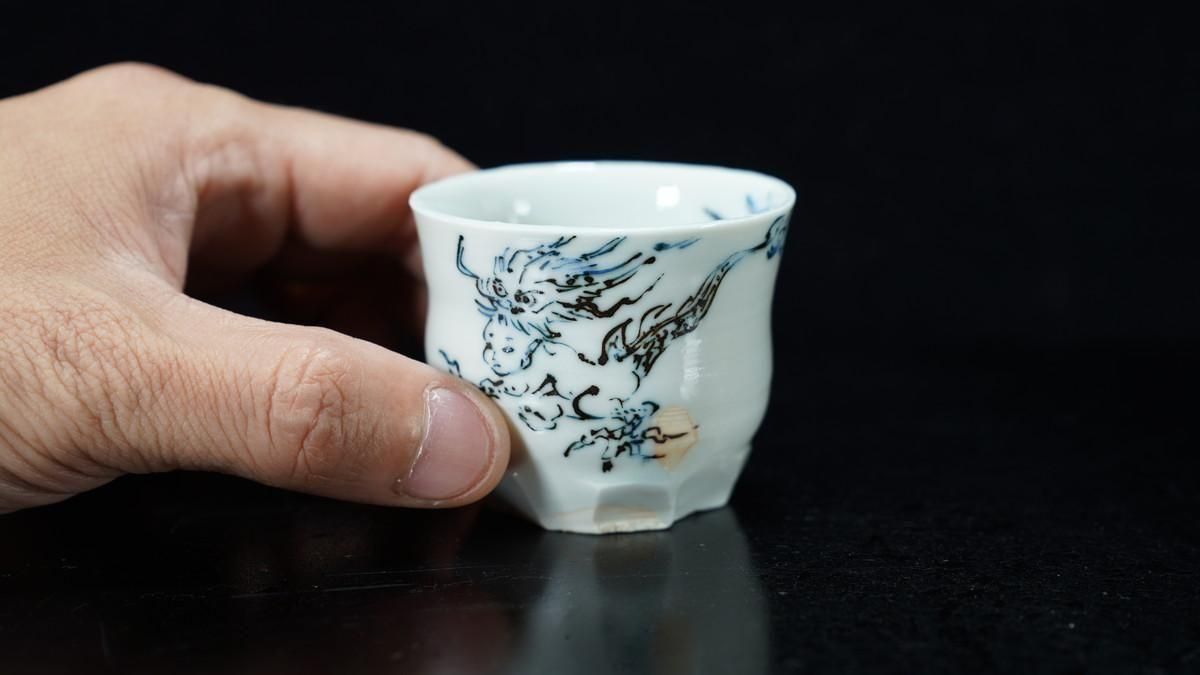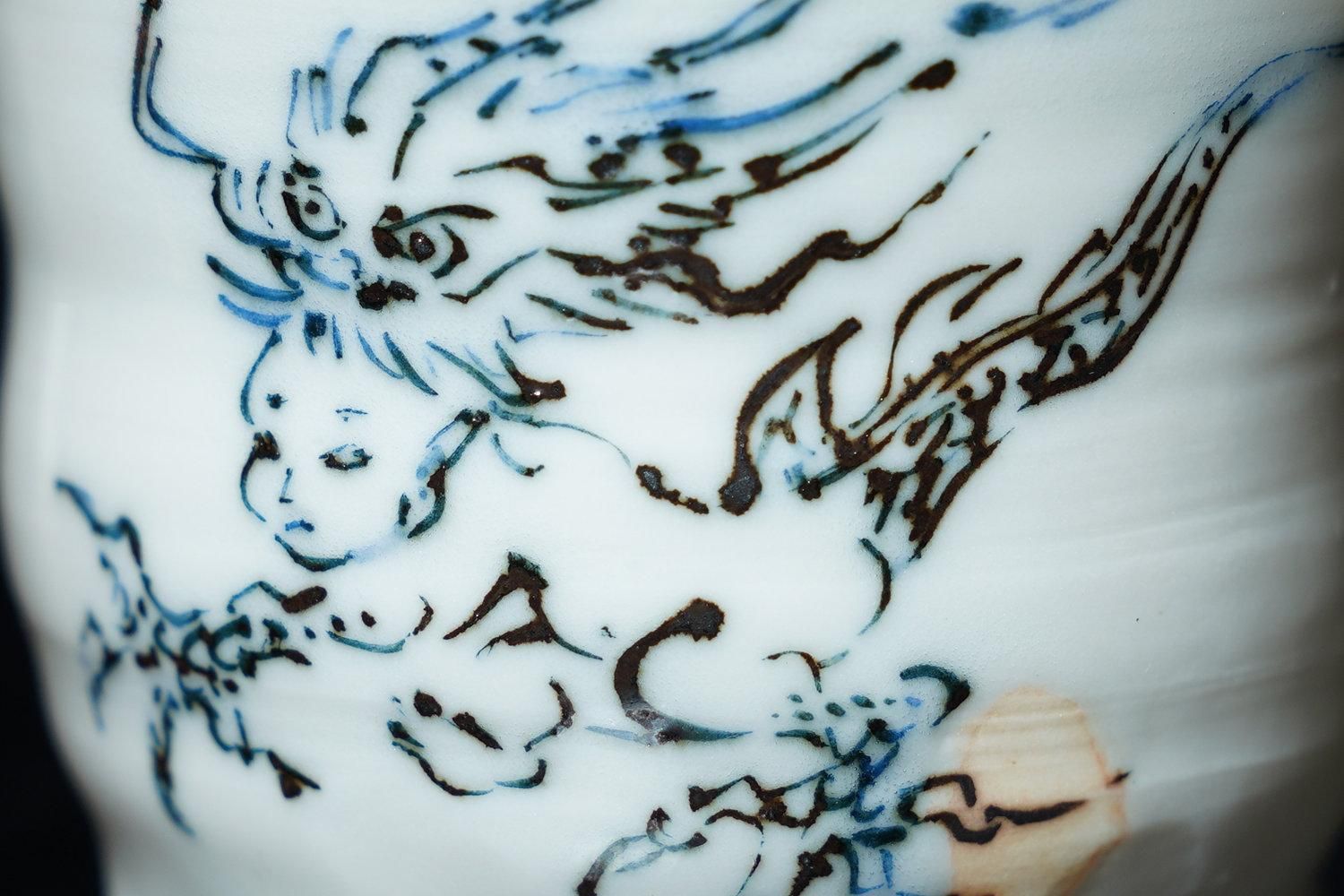 ÎëÌÚÎÃ»Ò ÀIJÖζʸÇÖ [ Blue and White Sake Cup with Dragon Design by Ryoko Suzuki ]