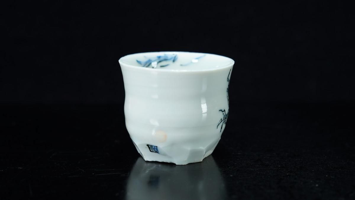 ÎëÌÚÎÃ»Ò ÀIJÖÇÈÅÆÊ¸ÇÖ¡ÊÌÚ±»¡Ë [ Blue and White Lobed Sake Cup with Wave and Rabbit Design by Ryoko Suzuki ]