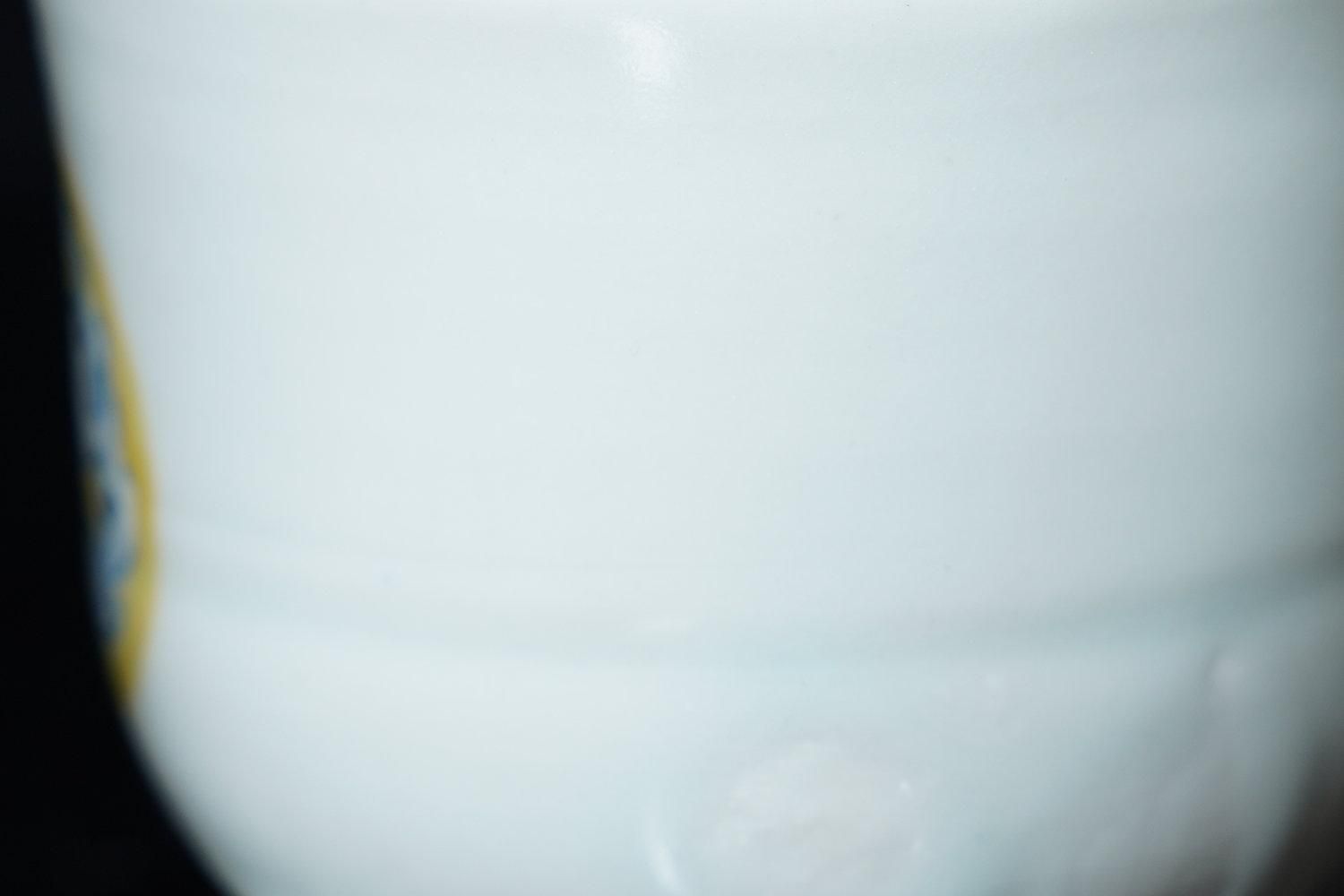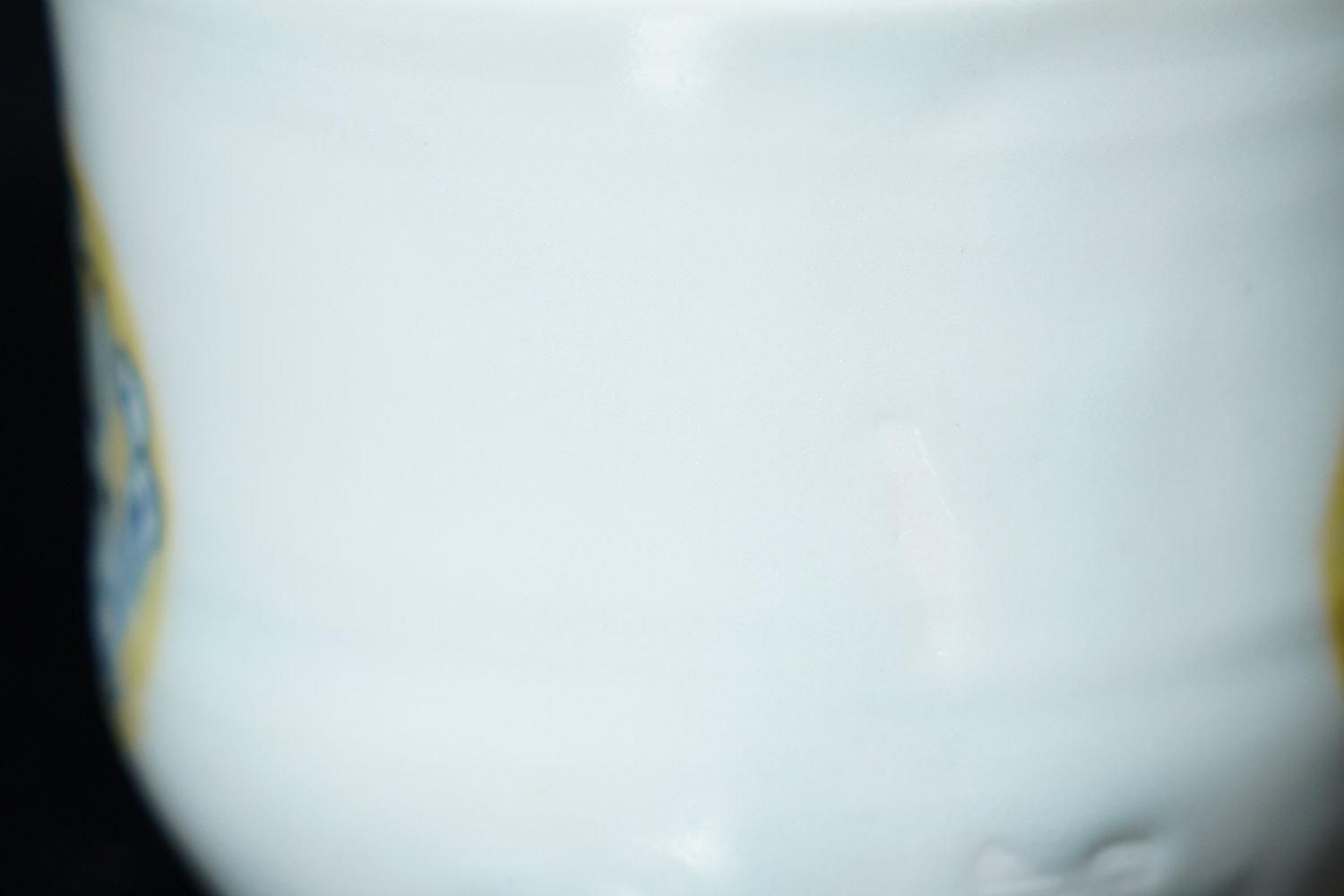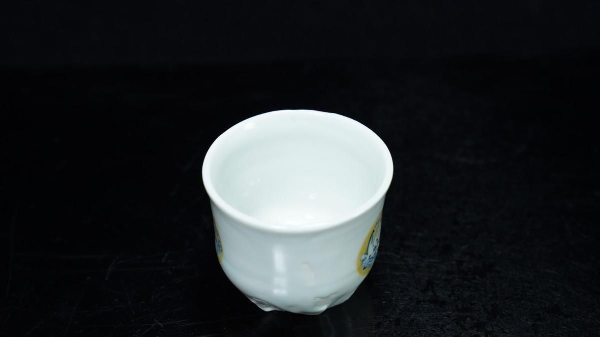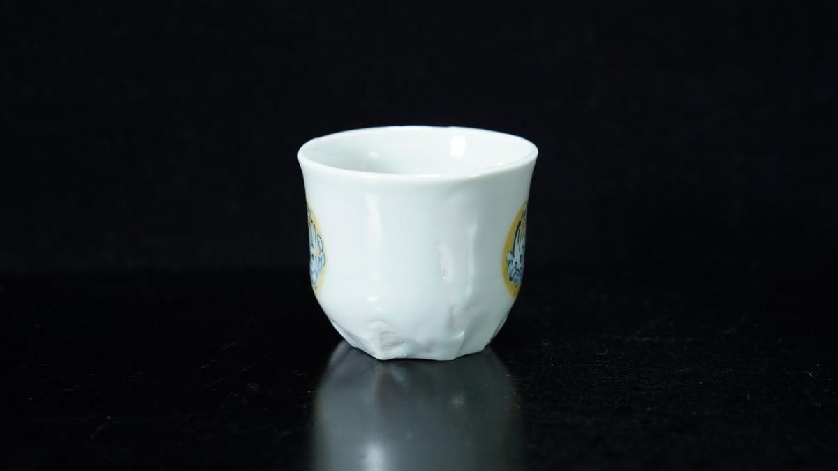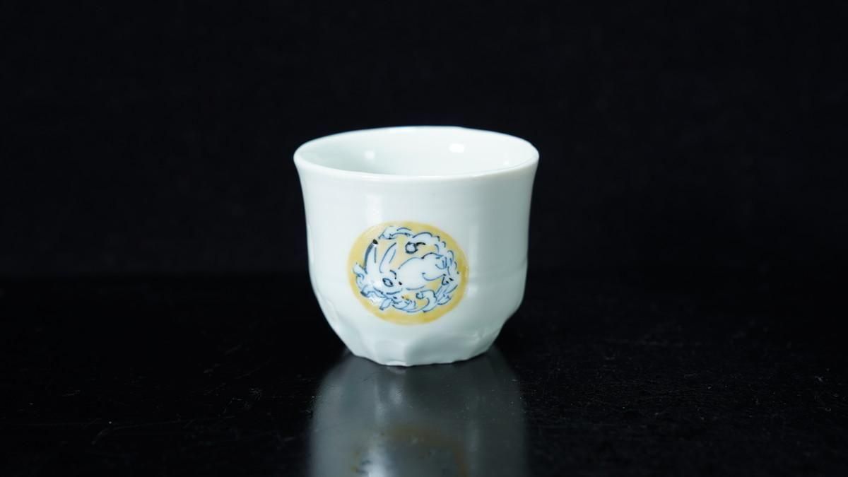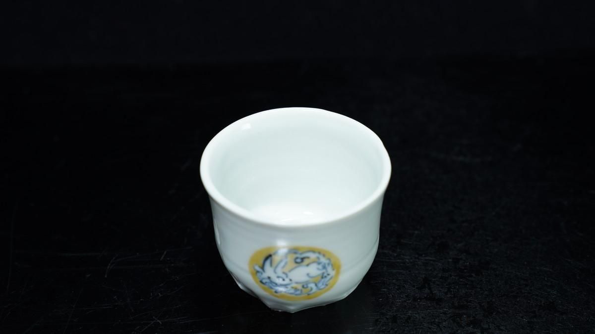 ÎëÌÚÎÃ»Ò ÀIJֲ«ºÌÇÈÅÆÊ¸ÇÖ [ Blue and White Sake Cup with Yellow-glazed Wave and Rabbit Design by Ryoko Suzuki ]