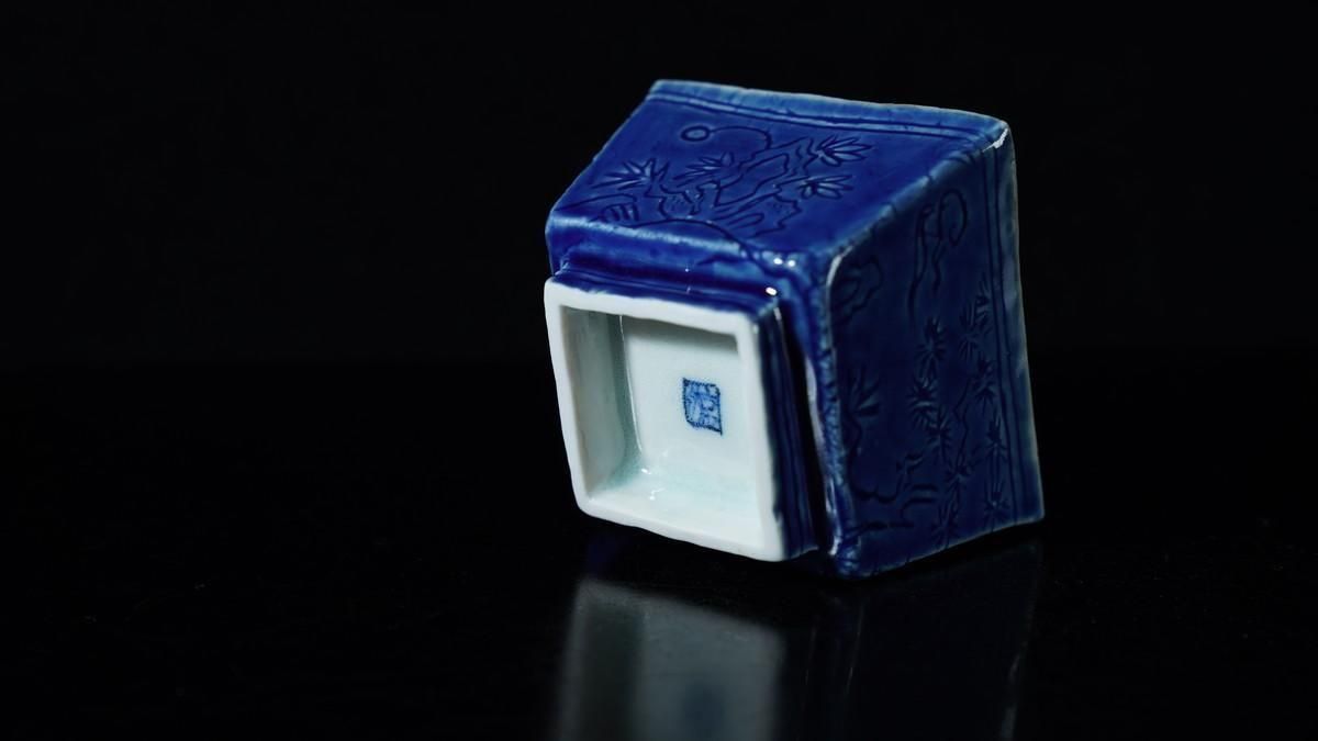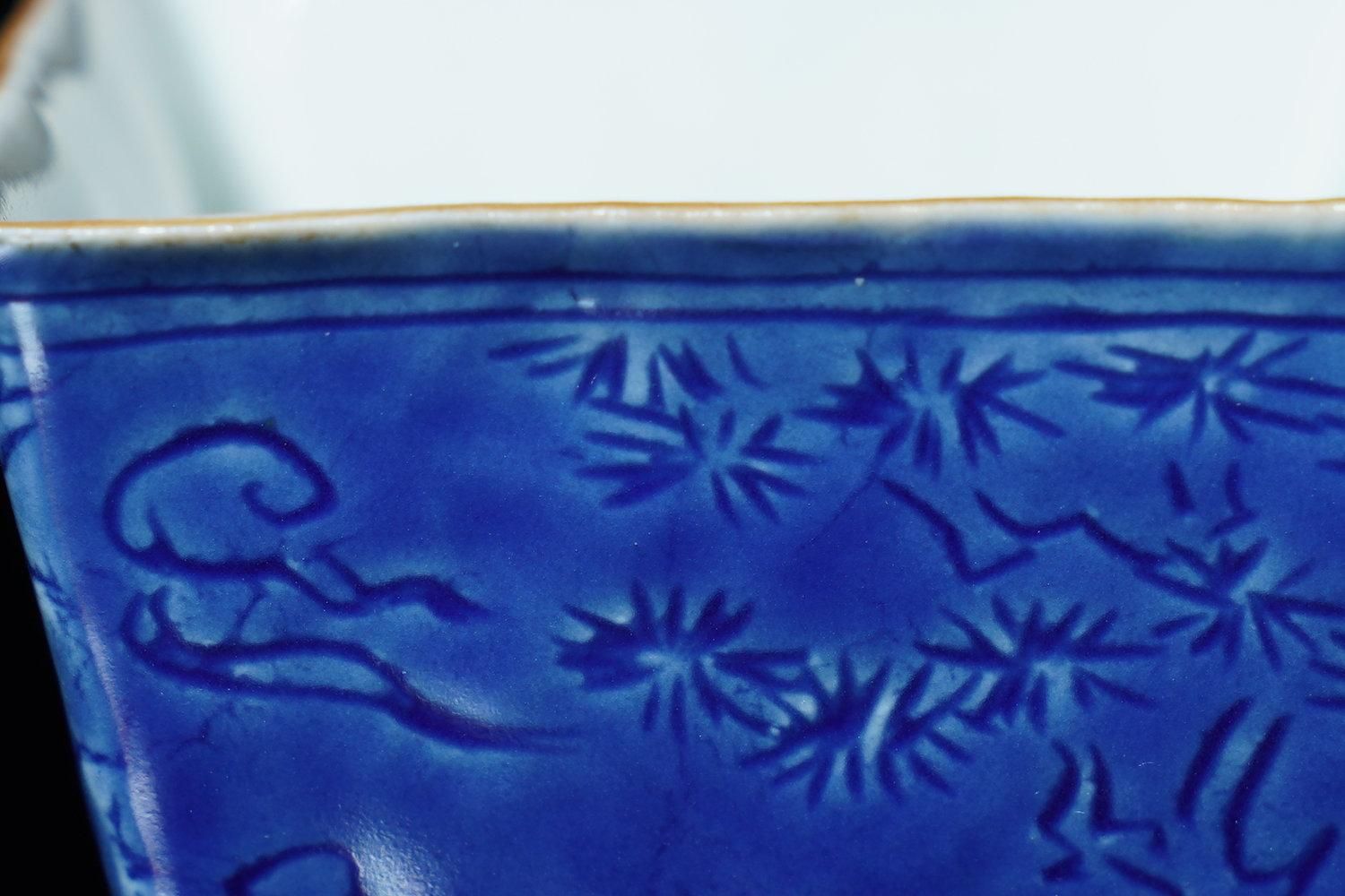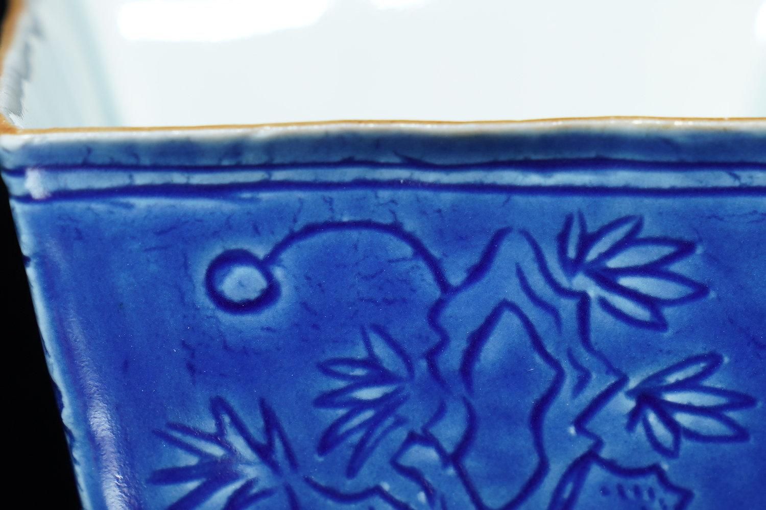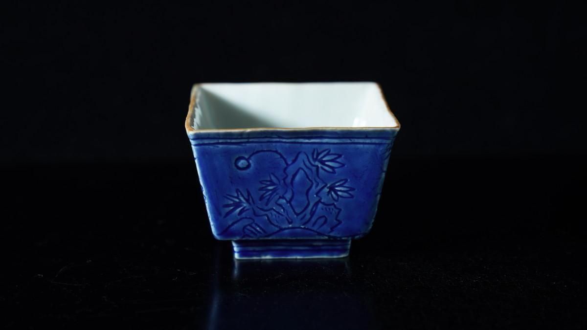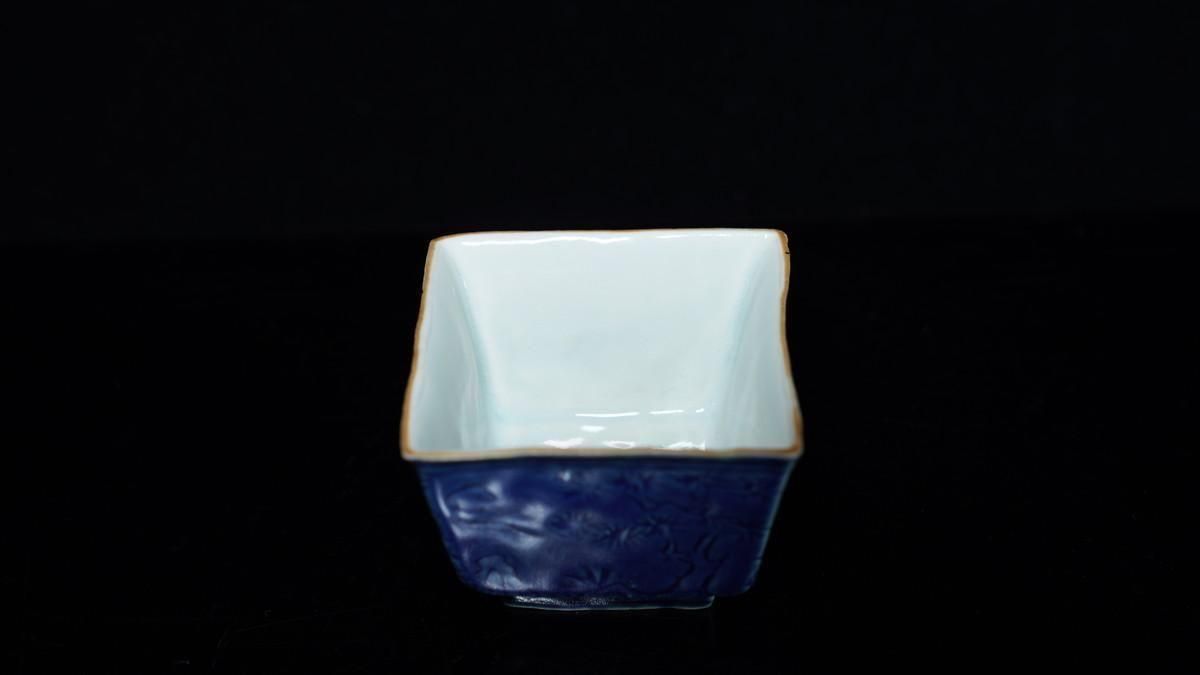 ÎëÌÚÎÃ»Ò ÀIJÖζʸÇÖ [ Blue and White Square Sake Cup with Dragon Design by Ryoko Suzuki ]