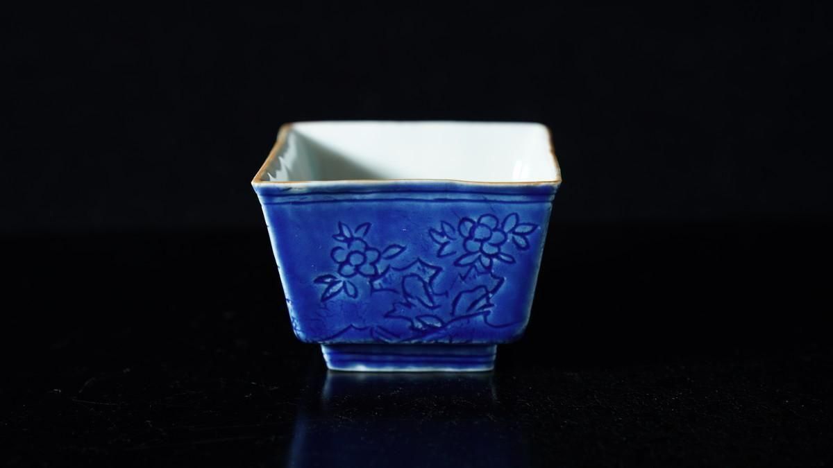 ÎëÌÚÎÃ»Ò Æ¦ºÌ²ÖĻʸ³ÑÇÖ [ Doucai Square Sake Cup with Floral and Bird Design by Ryoko Suzuki ]