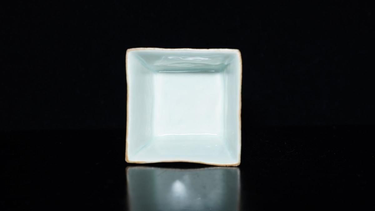 ÎëÌÚÎÃ»Ò Îк̲Öijʸ³ÑÇÖ [ Green-glazed Square Sake Cup with Floral and Butterfly Design by Ryoko Suzuki ]