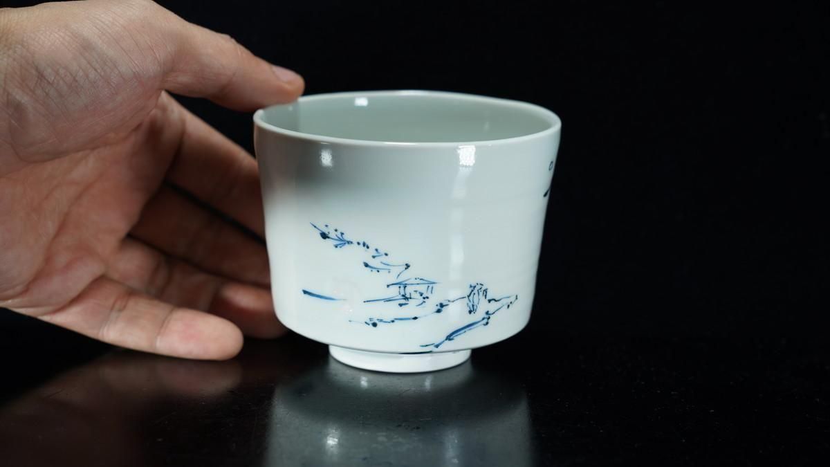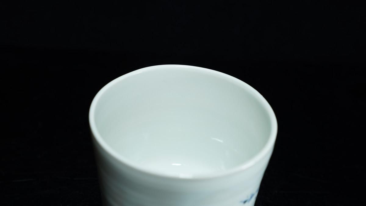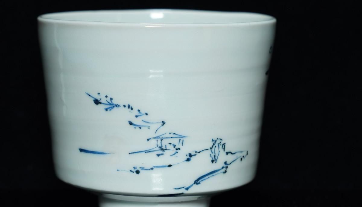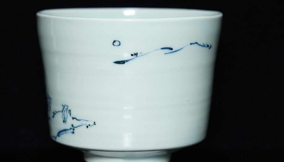 ÎëÌÚÎÃ»Ò ÀIJֲ«ºÌÇÈÅÆÊ¸ÇÖ [ Blue and White Sake Cup with Yellow-glazed Wave and Rabbit Design by Ryoko Suzuki ]