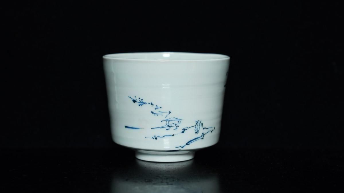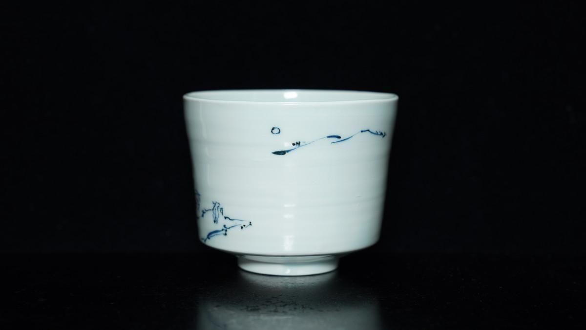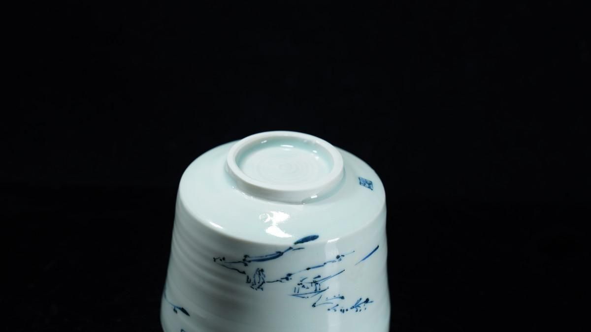 ÎëÌÚÎÃ»Ò ÀIJÖÇÈÅÆÊ¸ÇÖ¡ÊÌÚ±»¡Ë [ Blue and White Lobed Sake Cup with Wave and Rabbit Design by Ryoko Suzuki ]