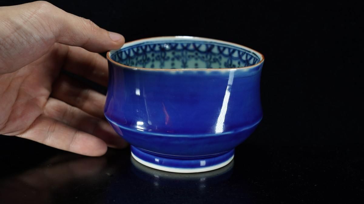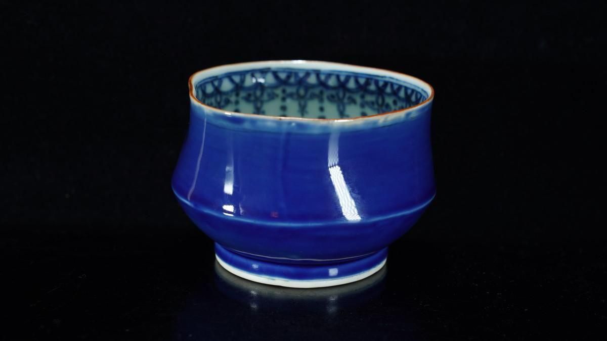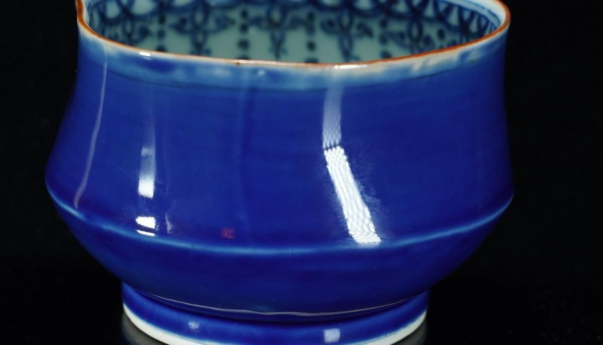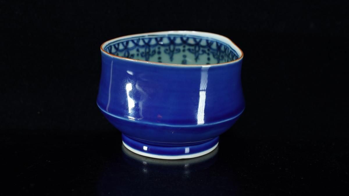 ÎëÌÚÎÃ»Ò ÎÜÍþÇÖ [ Cobalt Blue Lobed Sake Cup by Ryoko Suzuki ]