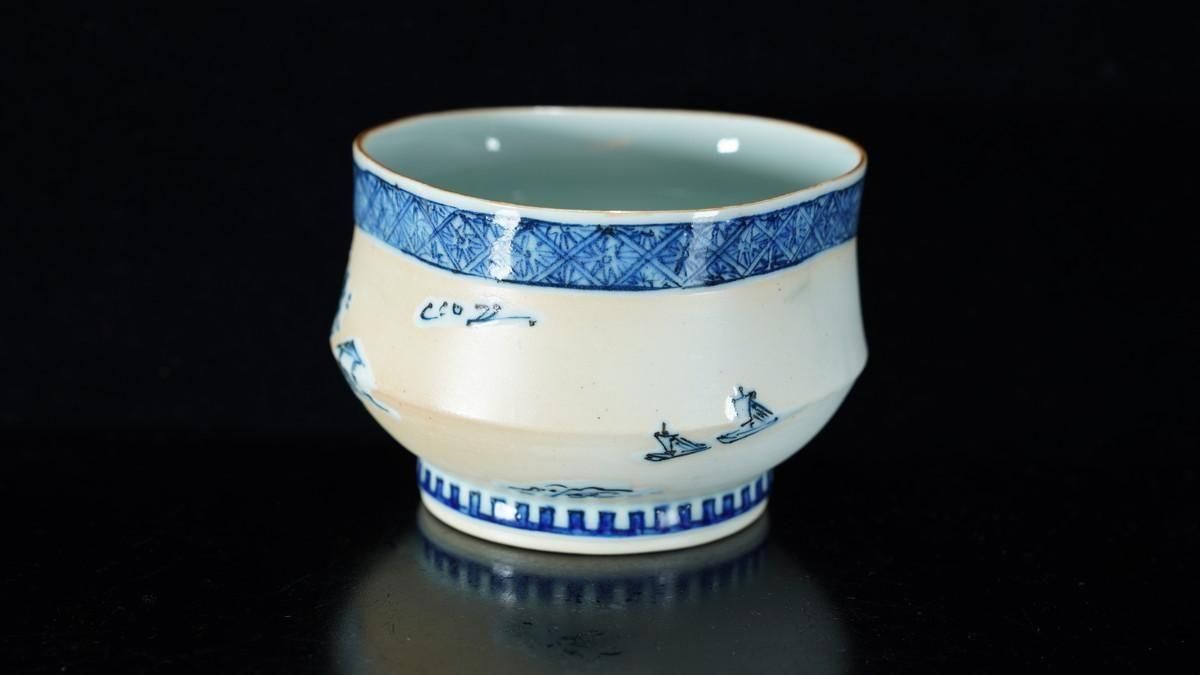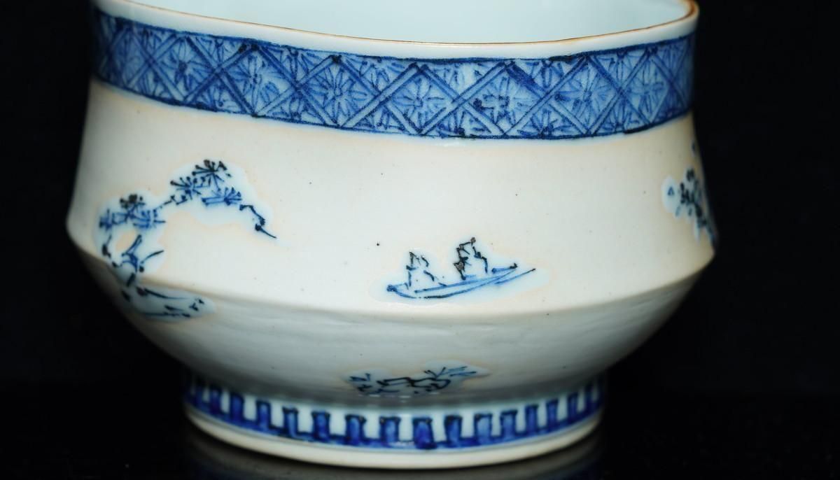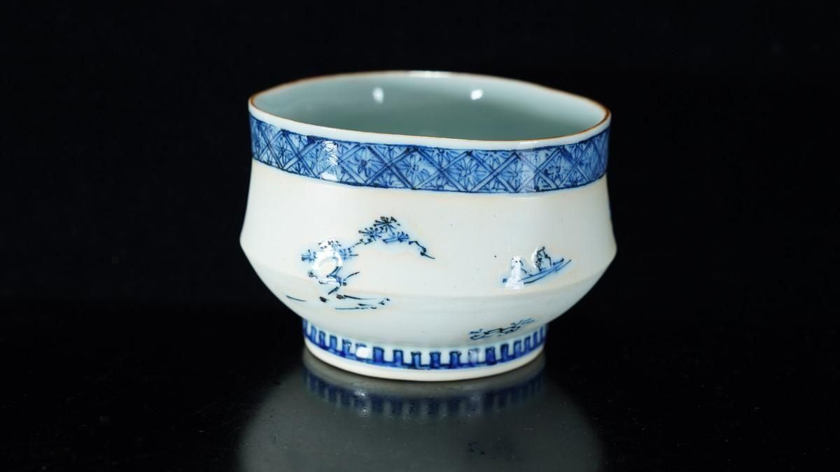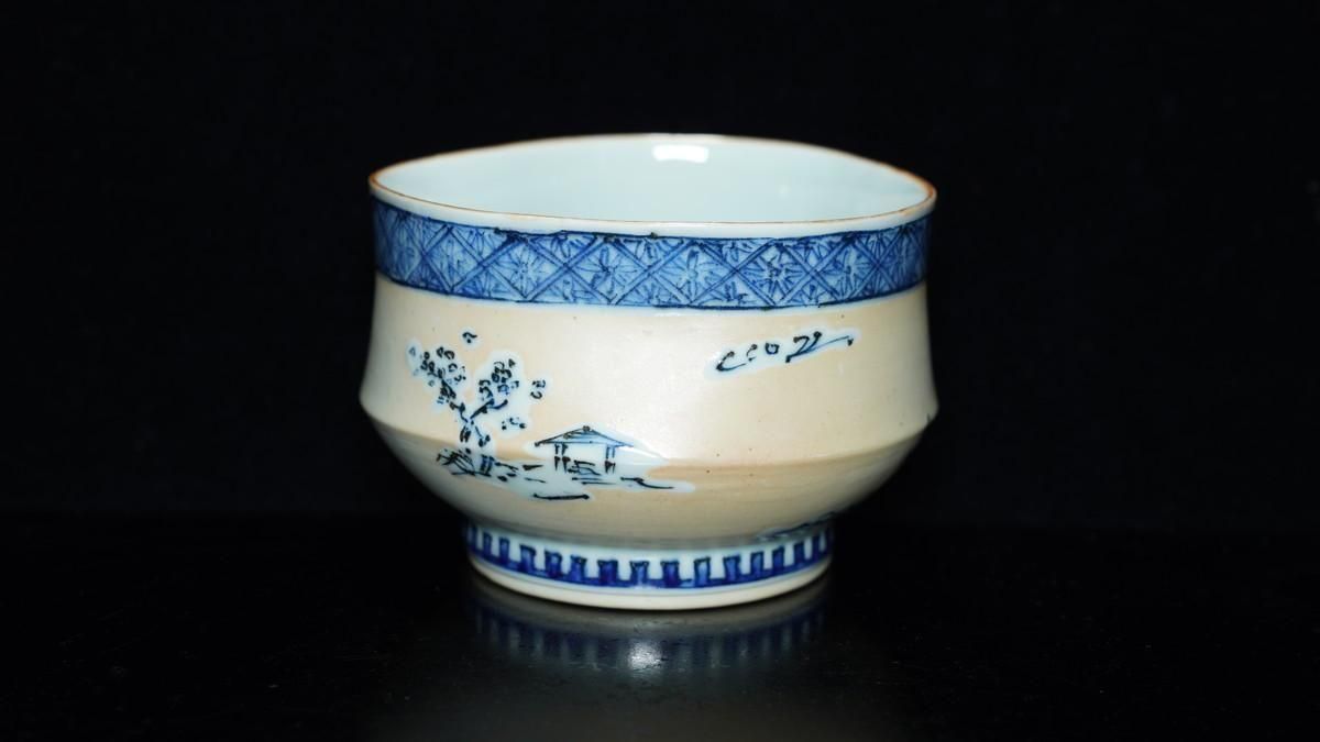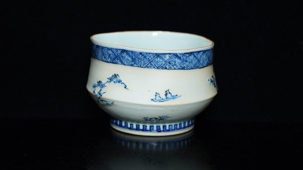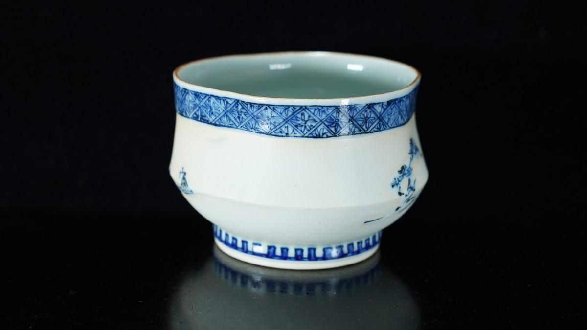 ÎëÌÚÎÃ»Ò ÀIJÖÇÈÅÆÊ¸ÇÖ¡ÊÌÚ±»¡Ë [ Blue and White Lobed Sake Cup with Wave and Rabbit Design by Ryoko Suzuki ]