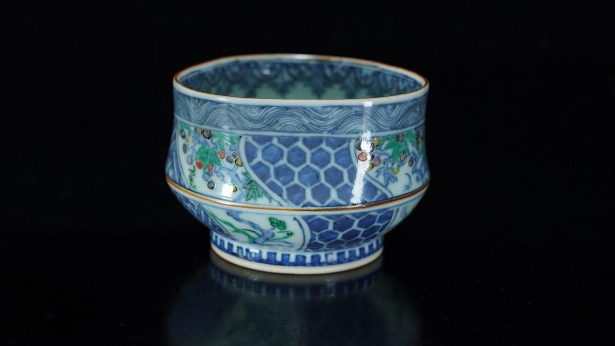 ÎëÌÚÎÃ»Ò Æ¦ºÌÊõ¿Ôʸ³ÑÇÖ [ Doucai Sake Cup with Hundred Treasures Design by Ryoko Suzuki ]