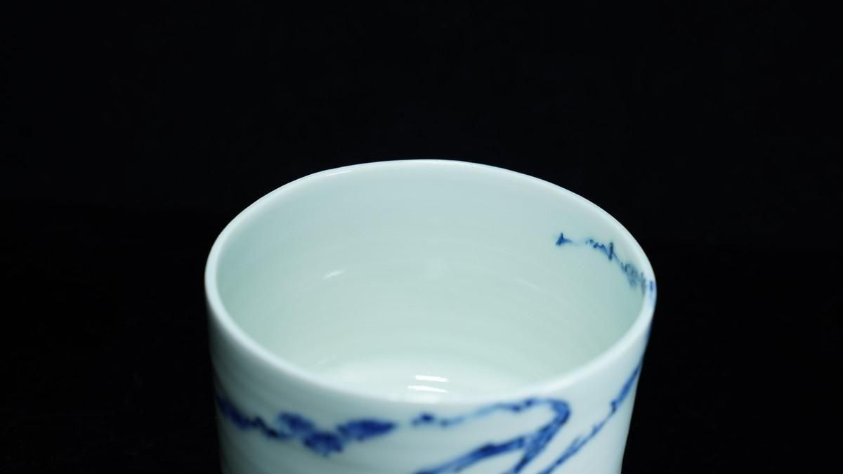 ÎëÌÚÎÃ»Ò ÀIJÖÇÈÅÆÊ¸ÇÖ¡ÊÌÚ±»¡Ë [ Blue and White Lobed Sake Cup with Wave and Rabbit Design by Ryoko Suzuki ]