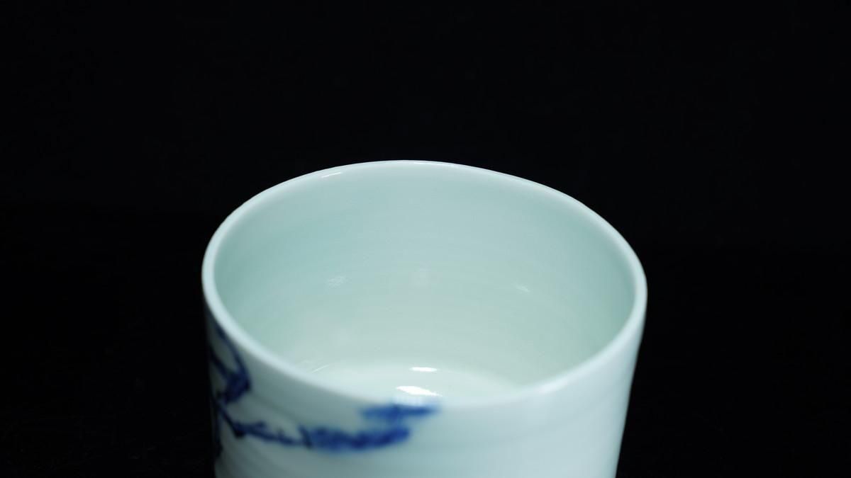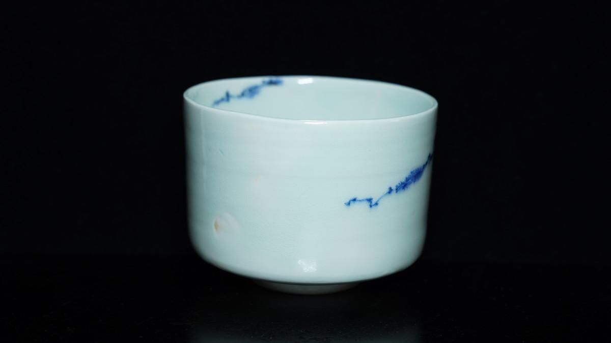 ÎëÌÚÎÃ»Ò ÀIJֲ«ºÌÇÈÅÆÊ¸ÇÖ [ Blue and White Sake Cup with Yellow-glazed Wave and Rabbit Design by Ryoko Suzuki ]